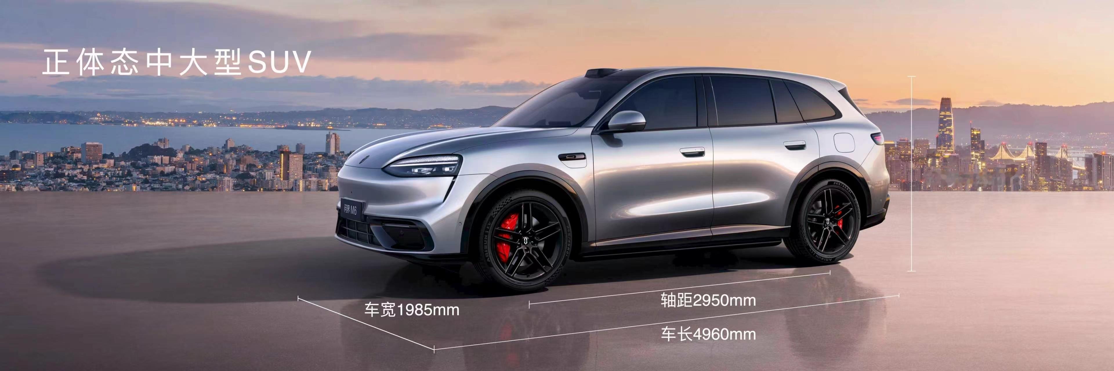 问界M6的尺寸也挺大,定位新锐智慧SUV,车身尺寸4960×1985×1736mm,轴距2950mm。