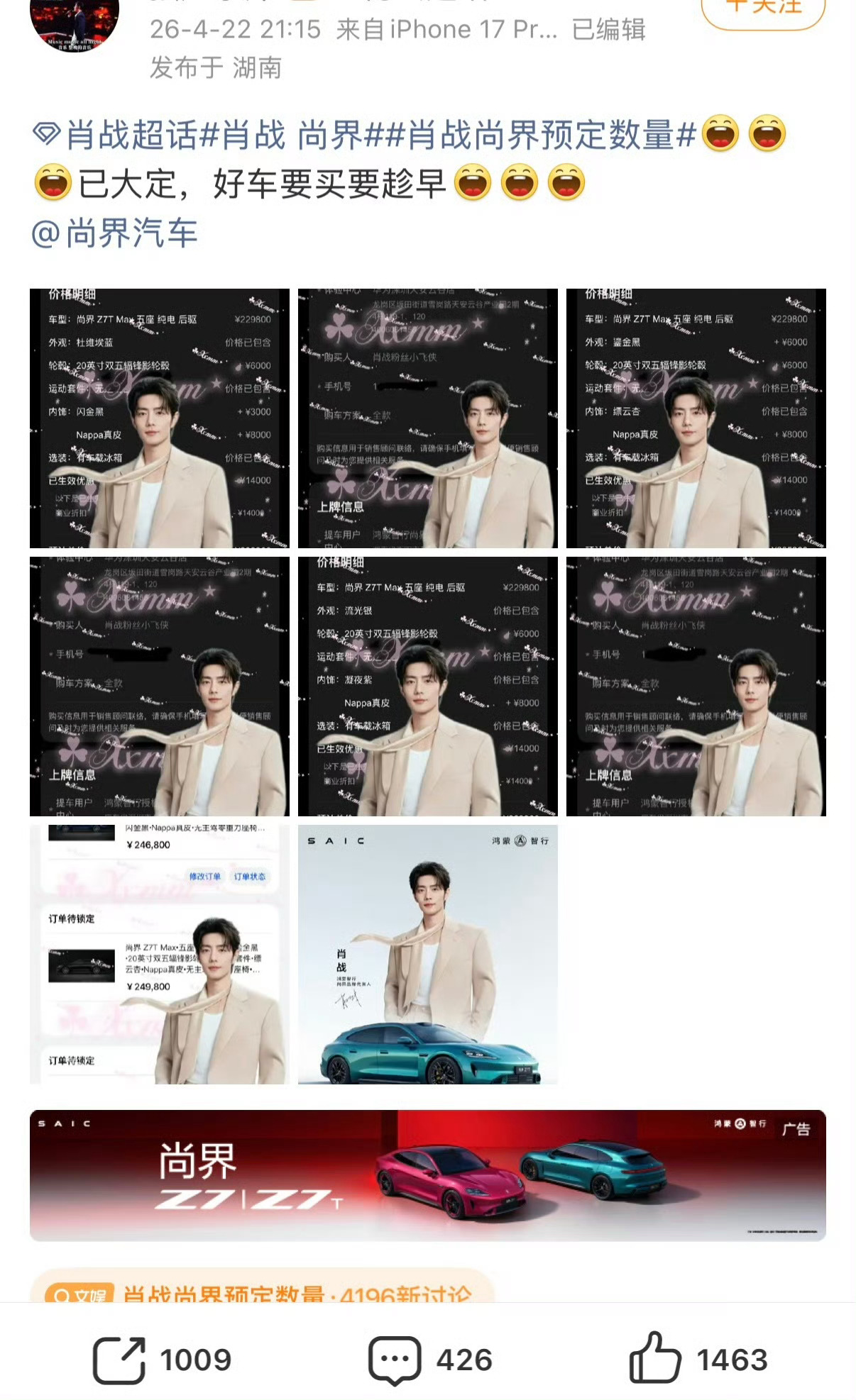 尚界z7肖战尚界预定数量尚界Z7鲨疯了!肖战影响力号召力拉满!27分钟大定已经12000台了高端车型硬核出圈👏真正的强强联合27分钟 超上一代一小时大定数!