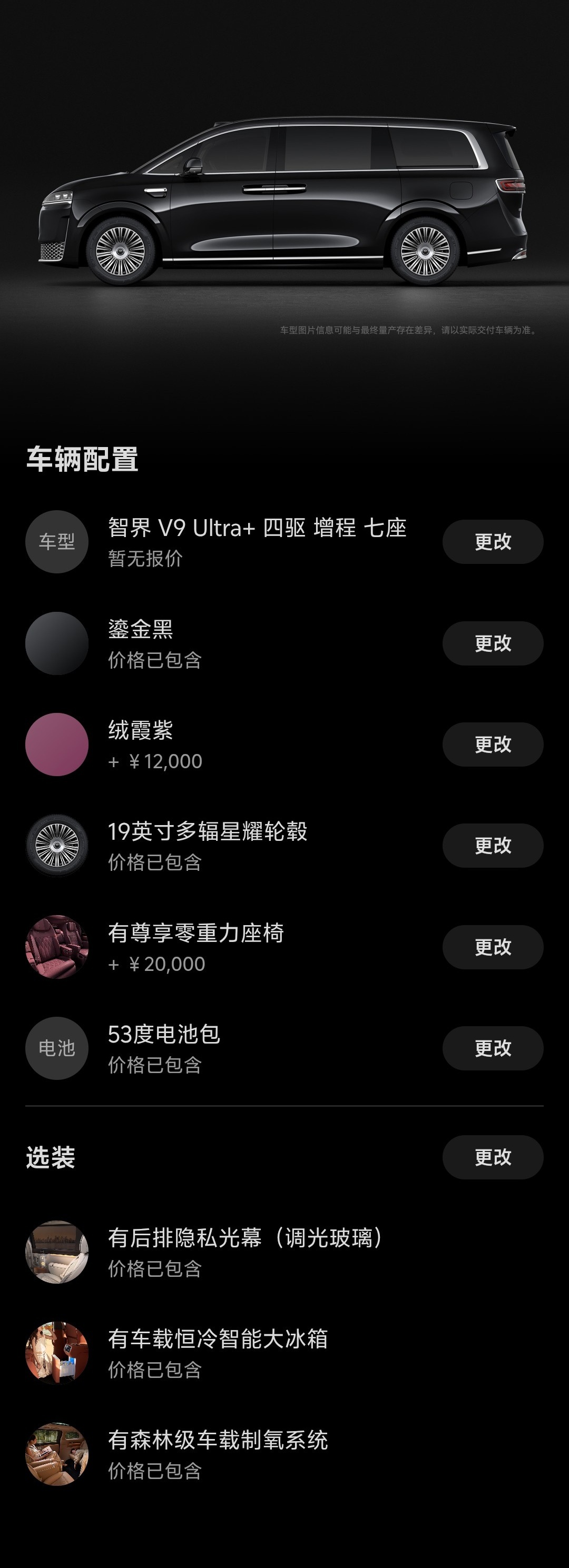 智界v9够不够9系?昨天我又研究了一下ultra+的版本,52.98万加上选配