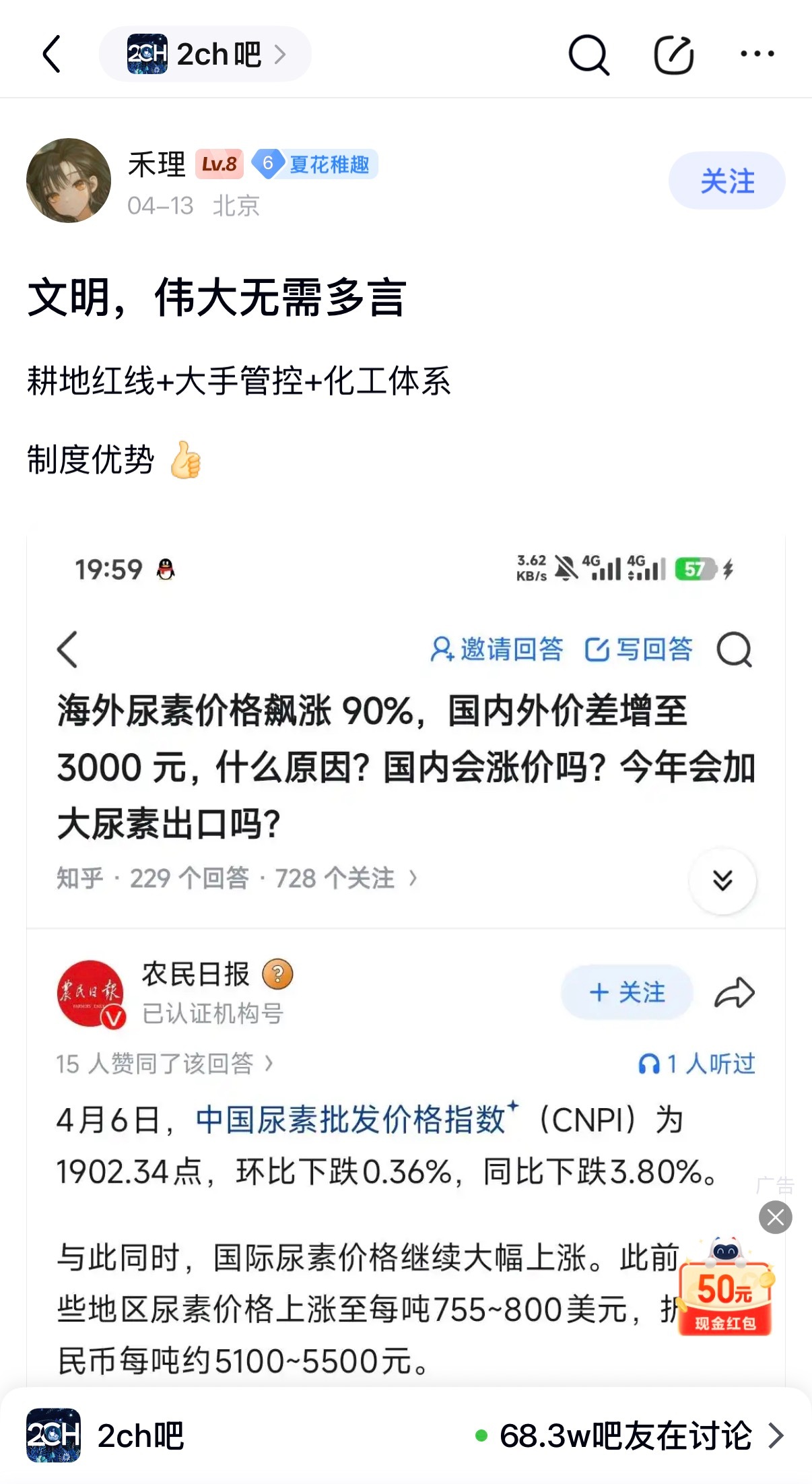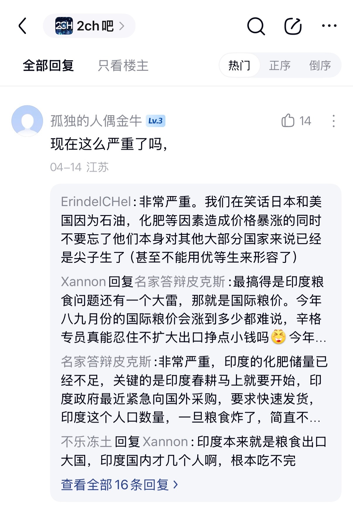 🔻然后你看着印度花战前两倍价格买尿素的新闻,再看看吧友十几天前发的这个帖子。?