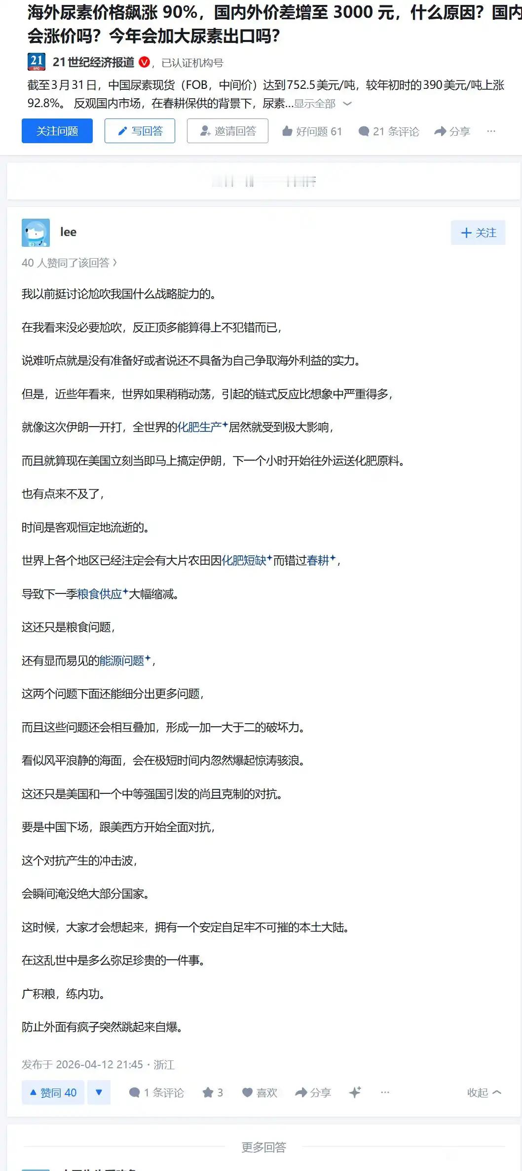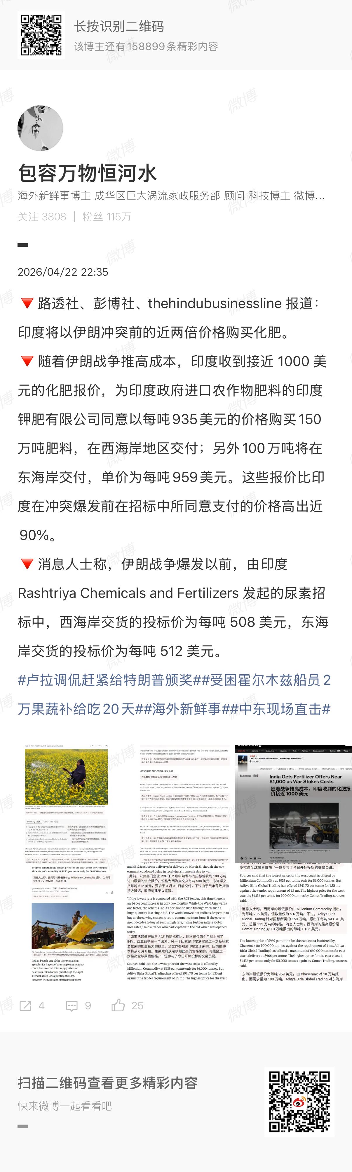 🔻然后你看着印度花战前两倍价格买尿素的新闻,再看看吧友十几天前发的这个帖子。🔻伟大,无须多言🫡卢拉调侃赶紧给特朗普颁奖受困霍尔木兹船员2万果蔬补给吃20天海外新鲜事中东现场直击