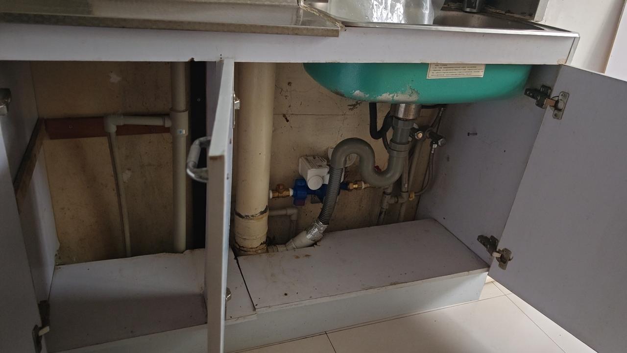 趁着换水表的功夫,顺便把水盆下面柜子收拾一下,把里面弄得规矩些。