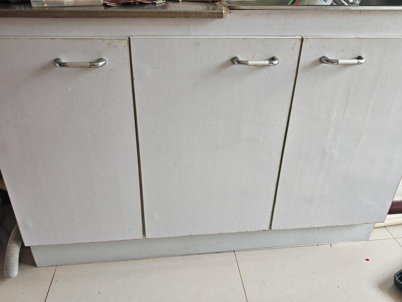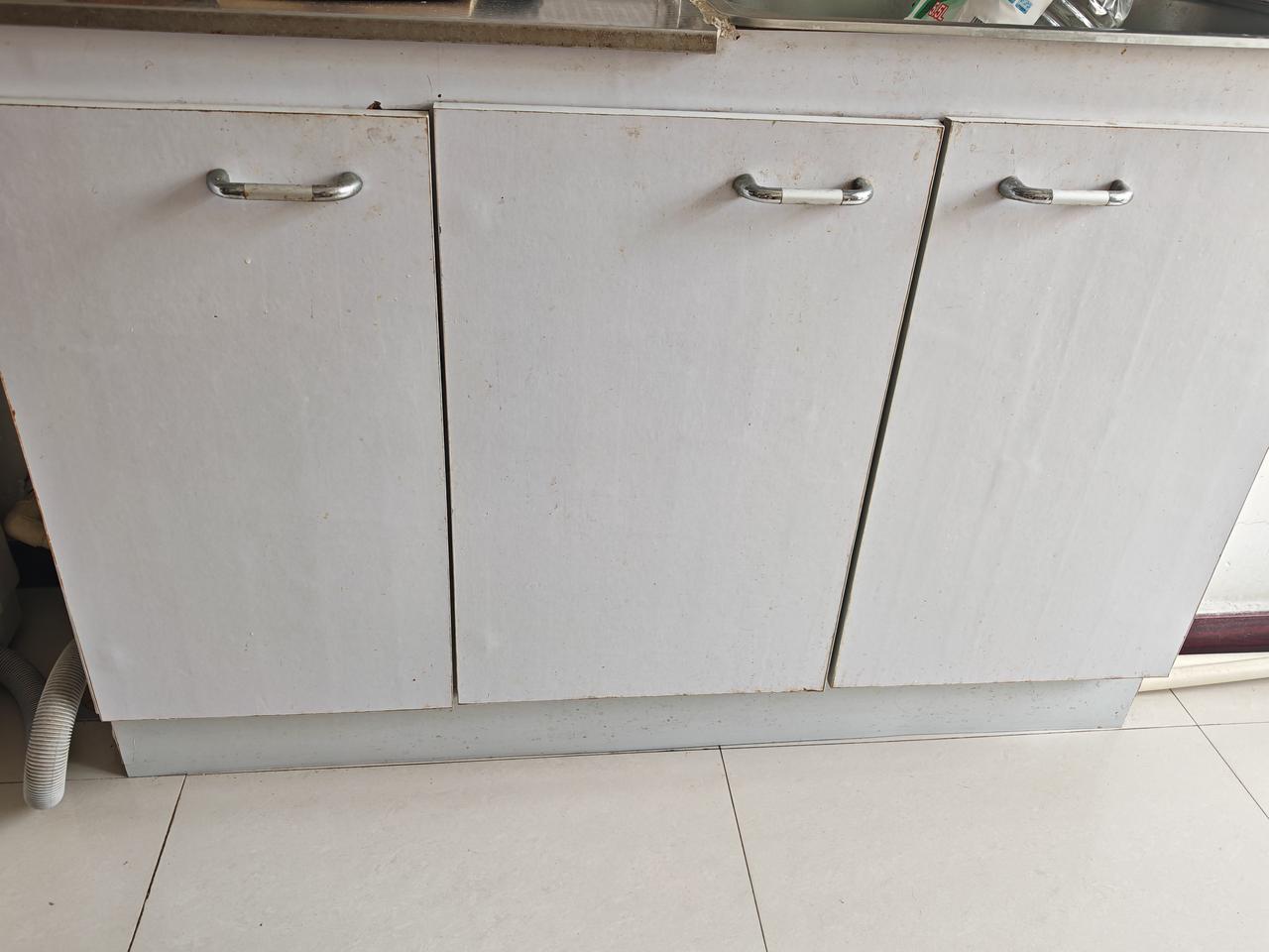经过长年累月的使用,柜子门都高低不齐,下陷了不少。