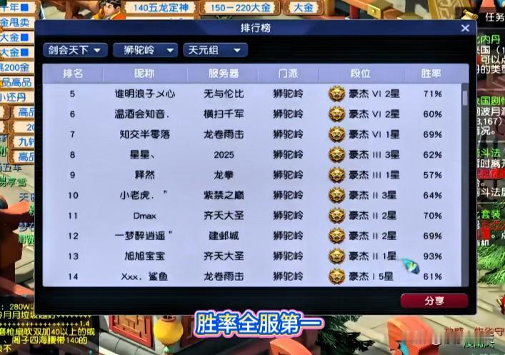 旭旭宝宝狮驼账号表现亮眼以93%的超高胜率稳居全服第一