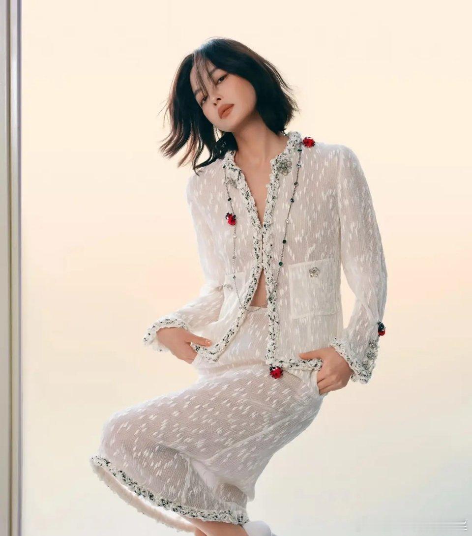 最喜欢白色这套,很轻盈很雅,第二是皮衣很有气场大女人很沉稳的感觉,整体还是亮色浅色比较衬人
