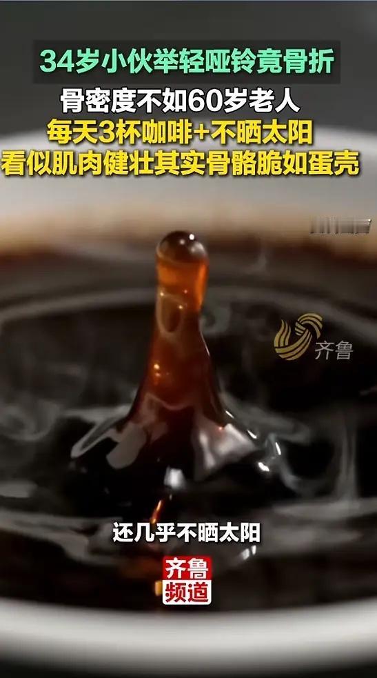 他每天雷打不动三杯咖啡,咖啡因摄入量差不多有400毫克。咖啡因会催促肾脏把钙当成废物快点排出去,等于一边不补,一边狂漏。时间长了骨头看着没事,但是已经不经事了。再加上他父母都有骨折史,遗传因素也拖了后腿。几样凑一起,年纪轻轻就成了“蛋壳青年”。