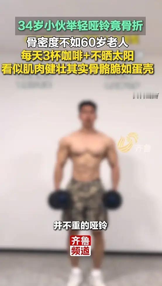 “悲剧还是发生了!”近日,浙江,一男子经常健身,看着很健康,却在健身房举哑铃时,竟然骨折了!去医院一查,发现他的骨密度比多数60岁女性还要低,后来才知道,男子几乎不晒太阳,每天还要喝3杯咖啡!网友:涨知识了!