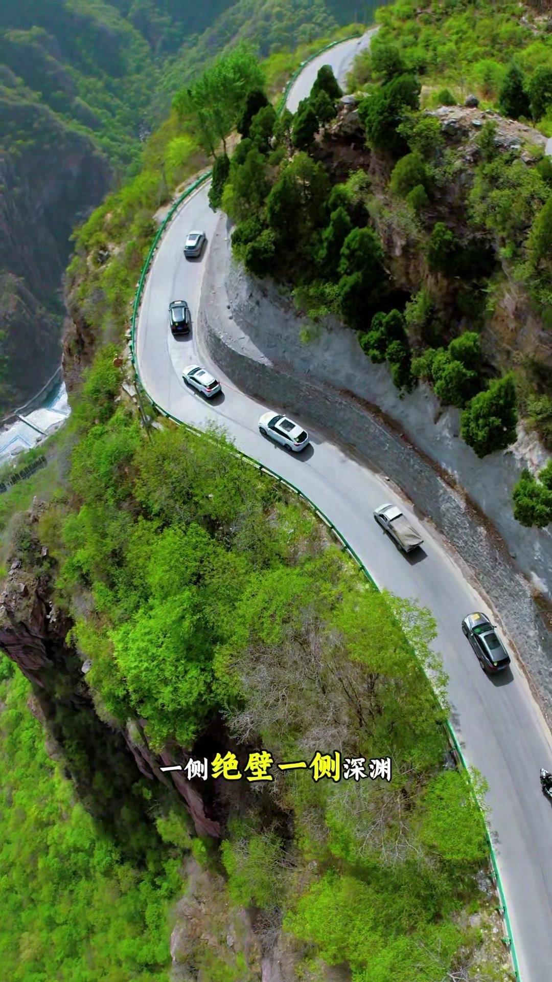 🌉紧接着驶入崖绝壁的天路宝上路,右手边C位观景台,脚下宝泉秘境一汪翡翠碧水嵌在丹崖峡谷间,太行全景尽收眼底。全程发卡弯连成片,一侧绝壁一侧深渊,被车友称作“太行版头文字D”,每一次过弯都是驾驶与视野的双重震撼。
