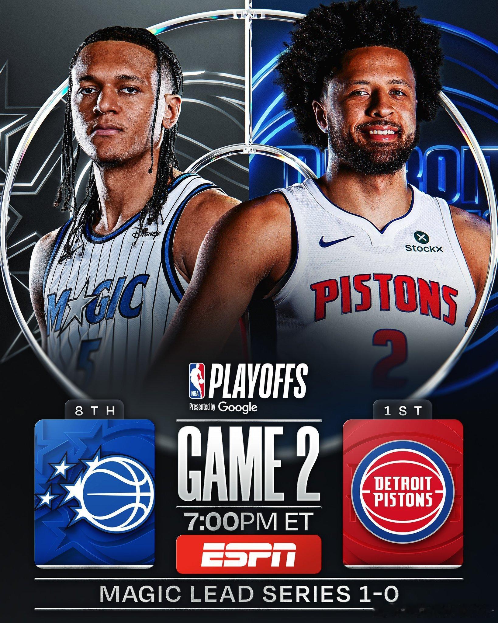 今日两场NBA季后赛魔术vs活塞、太阳vs雷霆📺直播看比赛:ez33.cc(浏览器输入)📺原声看球:网页链接(复制到浏览器打开)