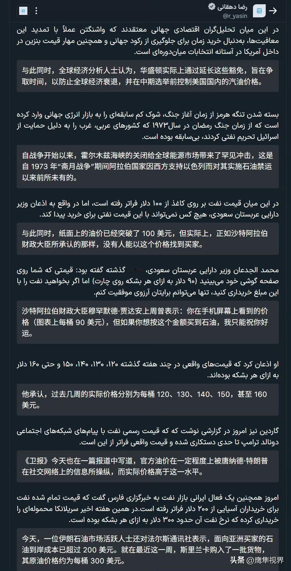 美国财政部长斯科特·贝森特周三表示,美国已将针对俄罗斯和伊朗海运石油的制裁豁免延长 30 天。在参议院会议上,克里斯·孔斯表示,自战争开始以来,伊朗已获得约 140 亿美元收入,而俄罗斯每天也额外获得 1.5 亿美元,用于支付其在乌克兰的军事开支。斯科特·贝森特在回应时声称,这 140 亿美元的数字是一个“神话”;不过他并未提供其他数字。并补充说:“这一举措阻止了全球价格的剧烈飙升,如果没有进行这种调整,油价可能会上涨到 150 美元。”全球经济分析人士认为,华盛顿实际上通过延长这些豁免,旨在争取时间,以防止全球经济衰退,并在中期选举前控制美国国内的汽油价格。与此同时,纸面上的油价已经突破了 100 美元,但实际上,正如沙特阿拉伯财政大臣所承认的那样,没有人能以这个价格买到石油。沙特阿拉伯财政大臣穆罕默德·贾达安上周曾表示:你在手机屏幕上看到的价格(图表上每桶 90 美元),但如果你想按这个金额买到石油,我只能祝你好运。他承认,过去几周的实际价格分别为每桶 120、130、140、150,甚至 160 美元。《卫报》也在一篇报道中写道,官方油价在一定程度上被唐纳德·特朗普在社交网络上的信息所操纵,而实际价格高于这一水平。一位伊朗石油市场活跃人士还对法尔斯通讯社表示,面向亚洲买家的石油到岸成本已超过 200 美元。就在最近这一周,斯里兰卡购入了一批货物,其原油价格约为每桶 300 美元。货运追踪公司 Vortexa 报告称,自美国开始封锁以来,至少有 34 艘与伊朗有关的油轮绕过了封锁;其中 19 艘油轮驶出波斯湾,15 艘油轮从阿拉伯海驶入。6 艘出港油轮运载了约 1070 万桶伊朗原油,按较布伦特原油折价计算,创造了约 9.1 亿美元的收入。