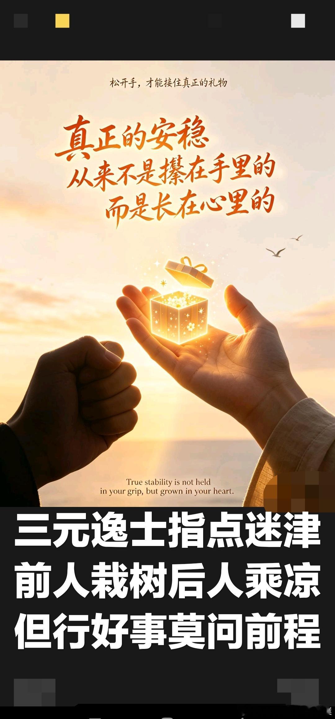 你不是神,渡不了跪着不走的人;信人性,而不是那张嘴别认命,你的运至少还有三次翻身机会袁了凡改命,改的是行为,更是心念。但他没明说:改命的根,在心不动。你遇到好事就狂,遇到坏事就慌——心在动,气就乱,命就跟着颠簸。“此心不动”不是麻木,是不被外境牵着走。心定了,才能“随机而动”——该做什么做什么,做完就放下。道家常说:心静则神归,神归则气顺。气顺了,你发出的每一个念头都是清静的、慈悲的。清静生善念,善念生福气。这不是玄学,是你把自己调成了“顺道”的模式。今天试试:遇到烦心事,先问自己“我的心动了吗?”不动,再行动。