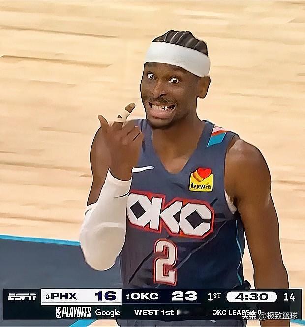 结果SGA全程连正眼都没瞧他一下。别说生气了,连表情都没变过,所有注意力全在比赛上。更狠的是,他还带着首节戳伤的手部,硬生生打了38分钟,全场25投13中,罚球9中9,爆砍37分5篮板9助攻,最后时刻连续命中关键球,亲手带走比赛。