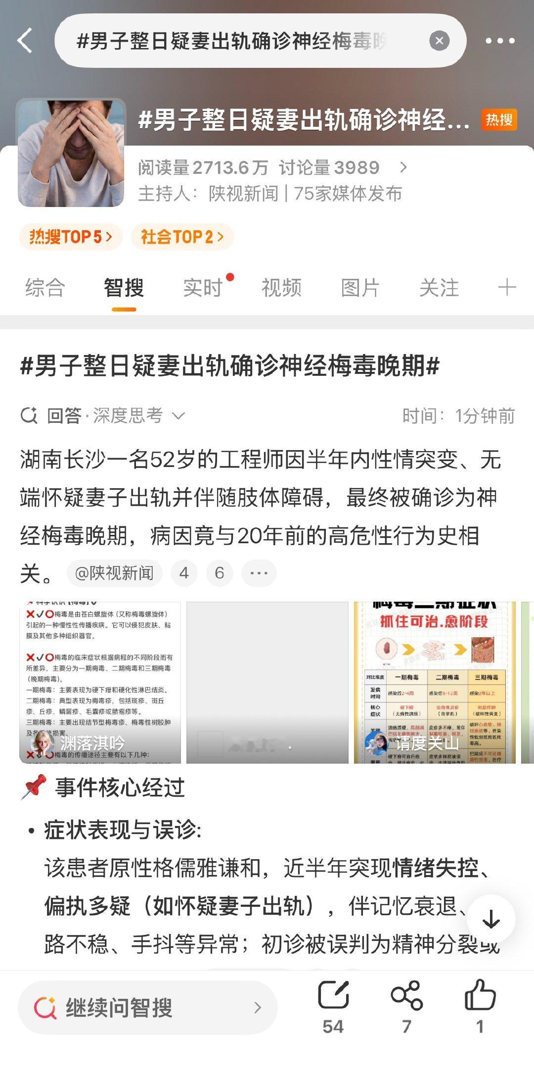 男子整日疑妻出轨确诊神经梅毒晚期打破了大众对梅毒的刻板印象:梅毒不是“只会烂皮肤
