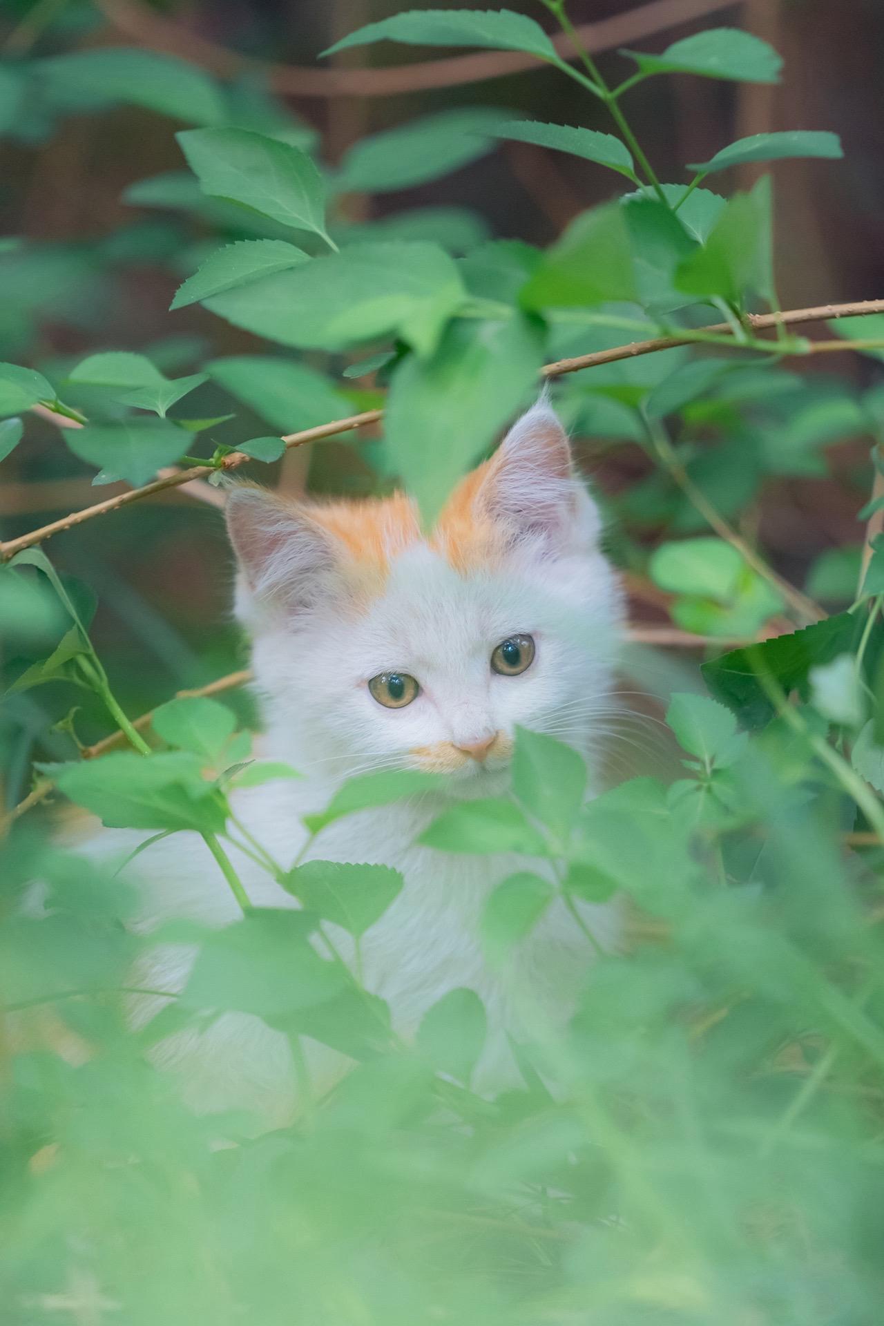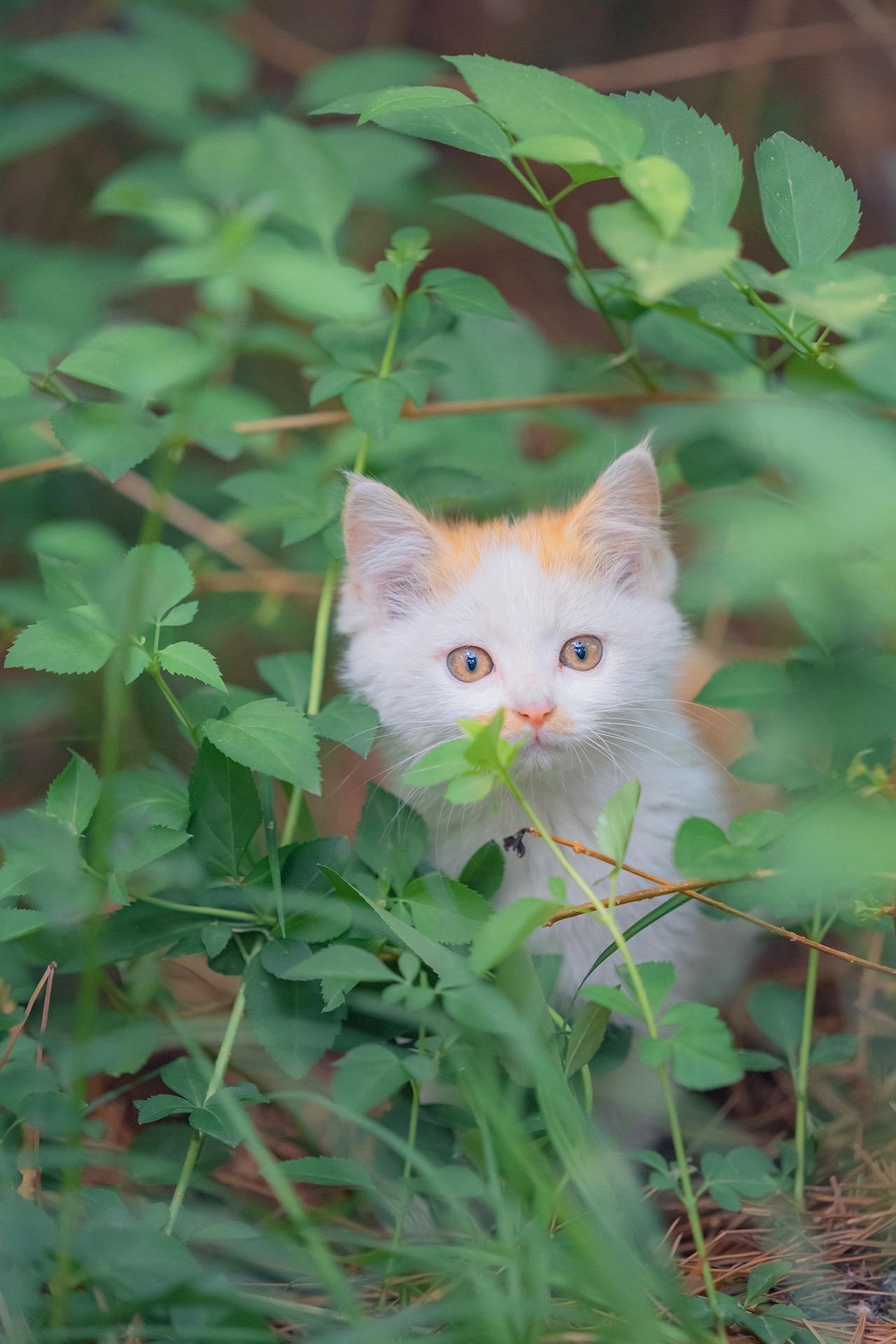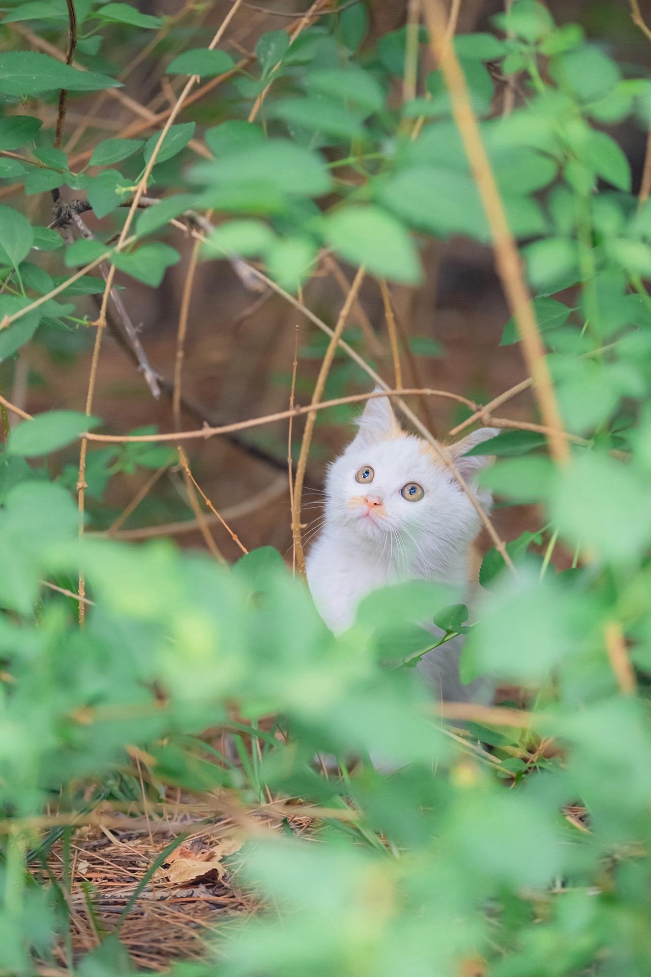 拍到奶猫小仙猫了。在灌木草丛里,一脸纯真好奇的样子,把两脚兽的心都要融化了