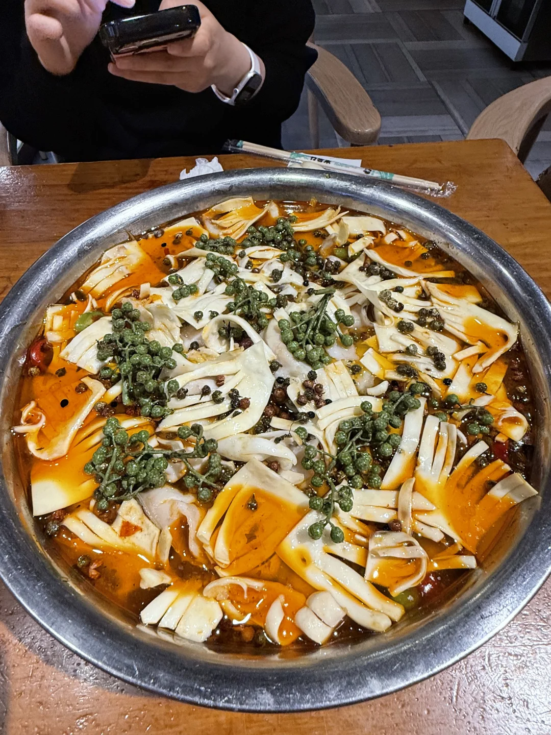 黄喉椒麻鱼也好好吃!大盆黄喉和鱼片都好多!麻香麻香的,里面还有手擀粉…好多配菜很入味!