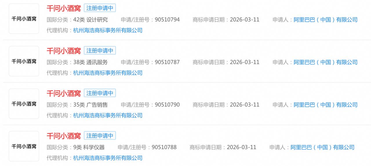 4月23日的时候,又有自媒体发现,阿里的这个“千问小酒窝”注册了商标,这个商标类型包括人形机器人等。