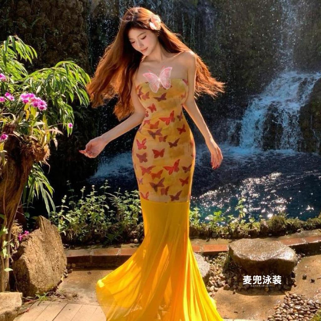 美到发光的黄蝴蝶泳衣|人鱼公主本鱼🧜♀️
