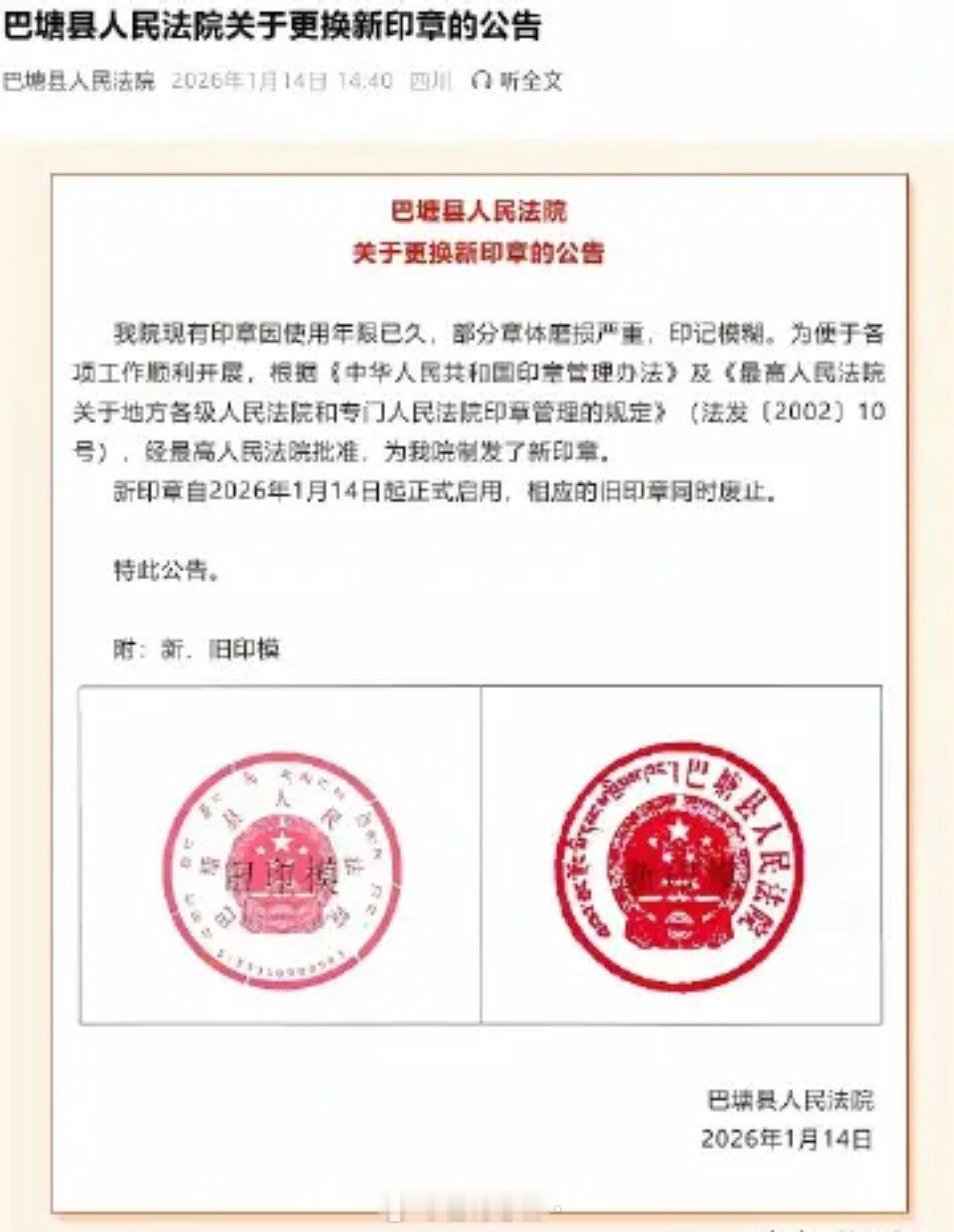 果然世界就是一个巨大的草台班子!四川某县法院等全国超10省份30余家司法机关,在印章更换公告中援引不存在的《中华人民共和国印章管理办法》或《公安部印章管理办法》,公安部确认这些法规未出台且无法律效力,而且这种援引现象存在好多年了。 真的不爆出来不知道,一爆出来吓一跳。原来我们认知当中最公平最正直的地方,却透露着如此草率的一面。居然连这种"空气法"都可以堂而皇之的拿来用,发公告的人审核的人做领导的人一个个都是睁眼瞎吗? 那么现在严重的问题来了:法院用一部不存在的法律法规作为依据来启用自己的印章,请问这个印章还是有效的吗?如果判定不是有效的,那么那些法院已经盖章出去的判决书,裁定公告,是不是都要推倒重来呢??