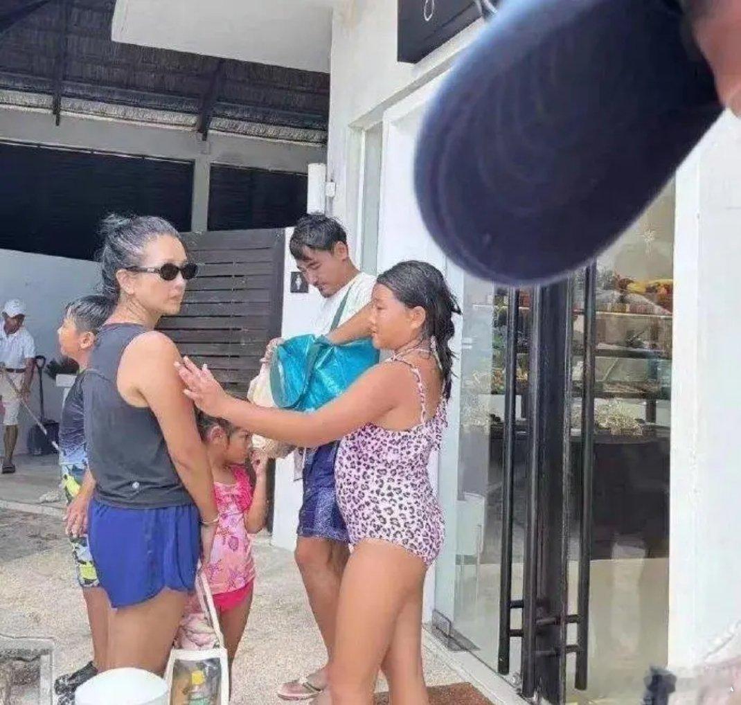 何洁一家五口泰国度假,38岁的她满头白发,两女儿颜值身高差太大