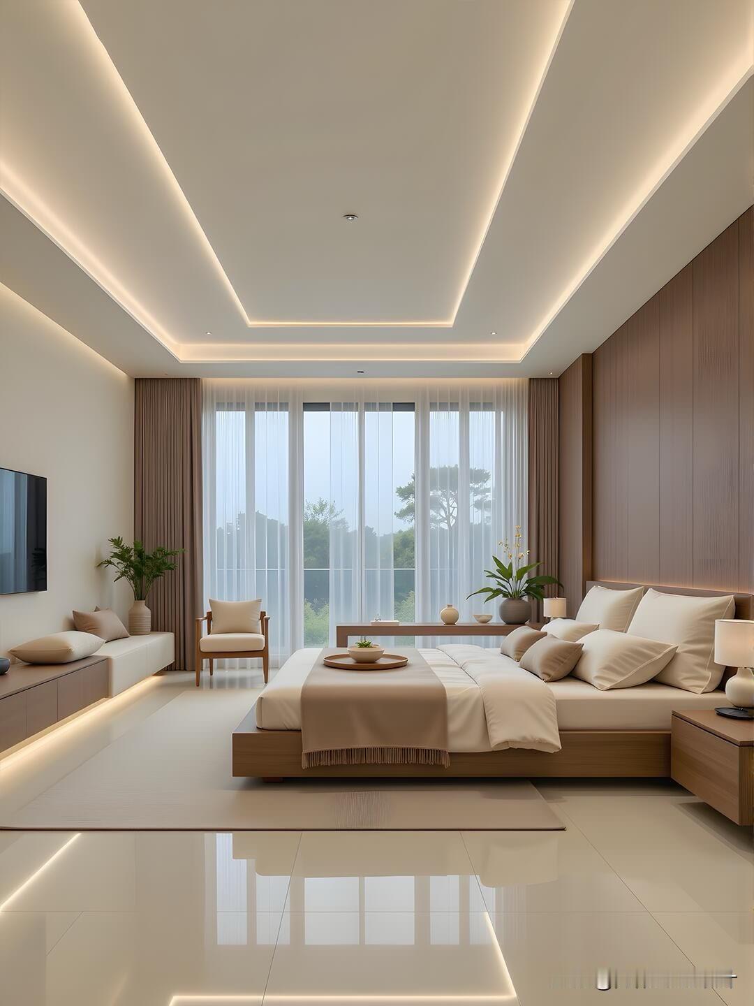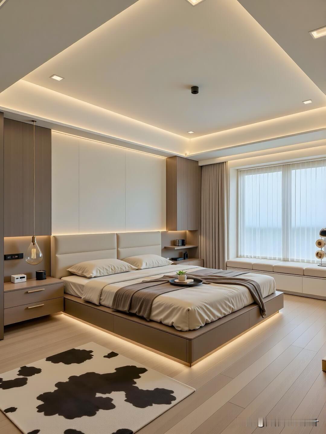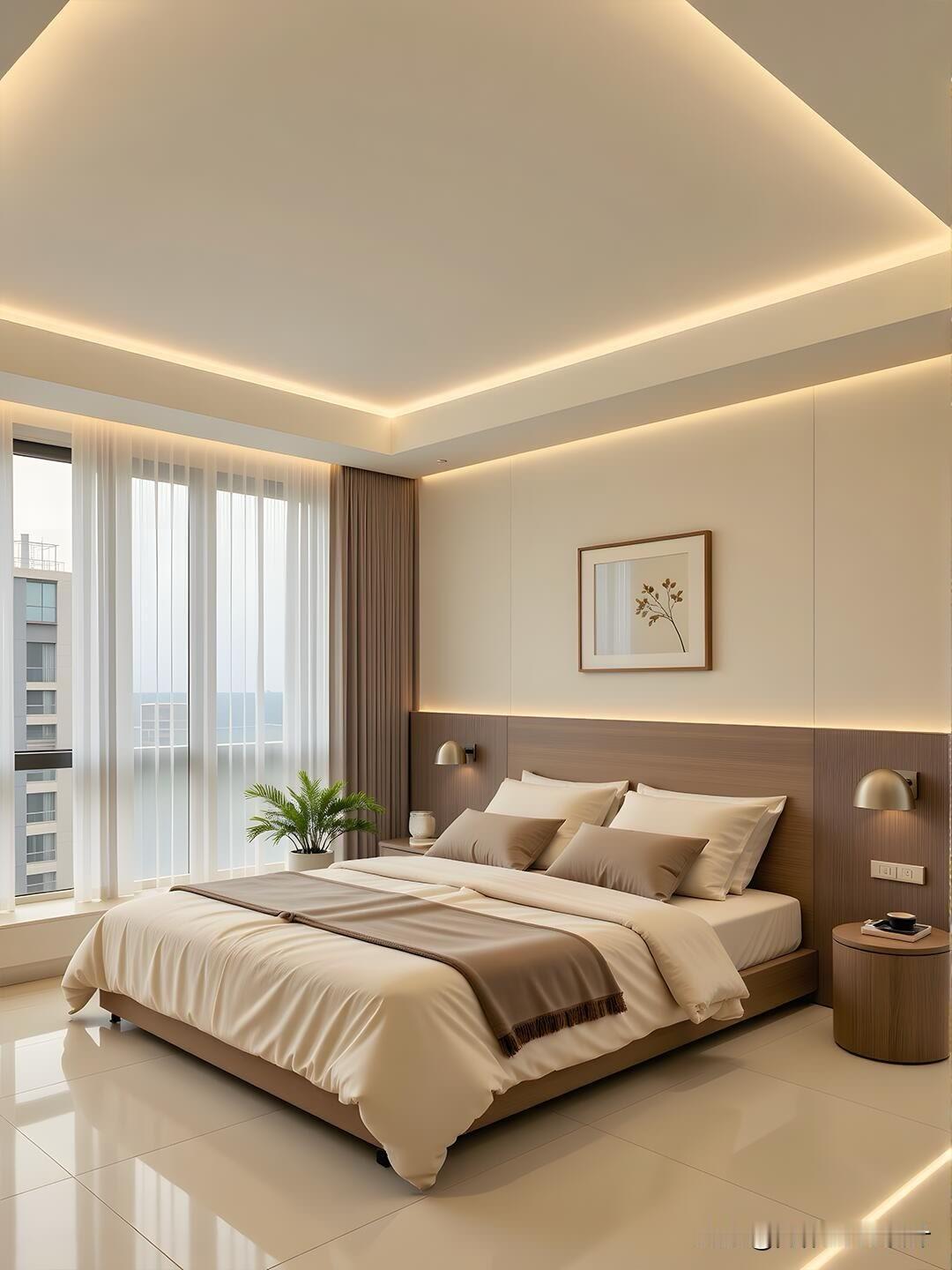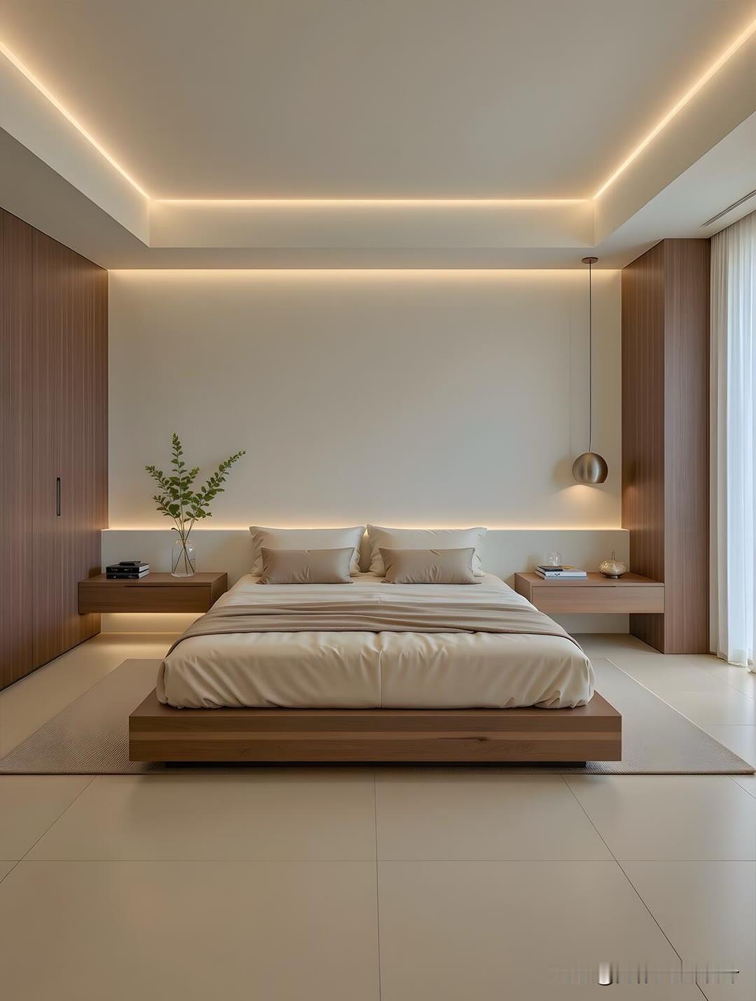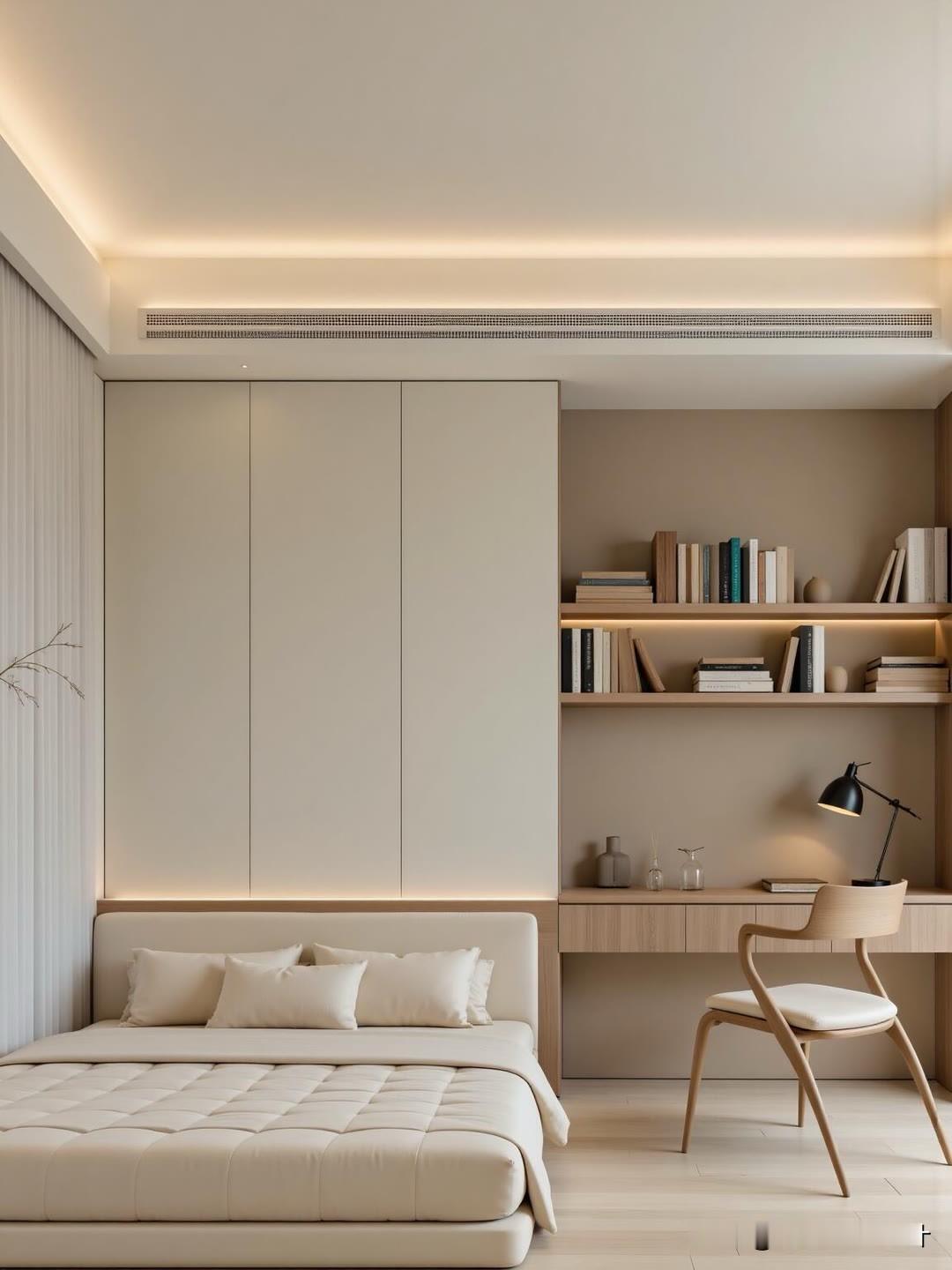 - 半墙木饰面/石膏护墙板:只做沙发背景、床头背景,大面积留白+小面积材质拼接,高级感立刻出来。
