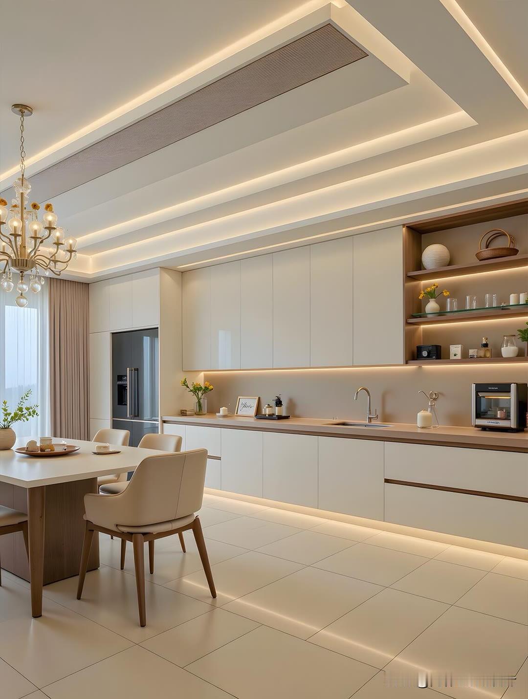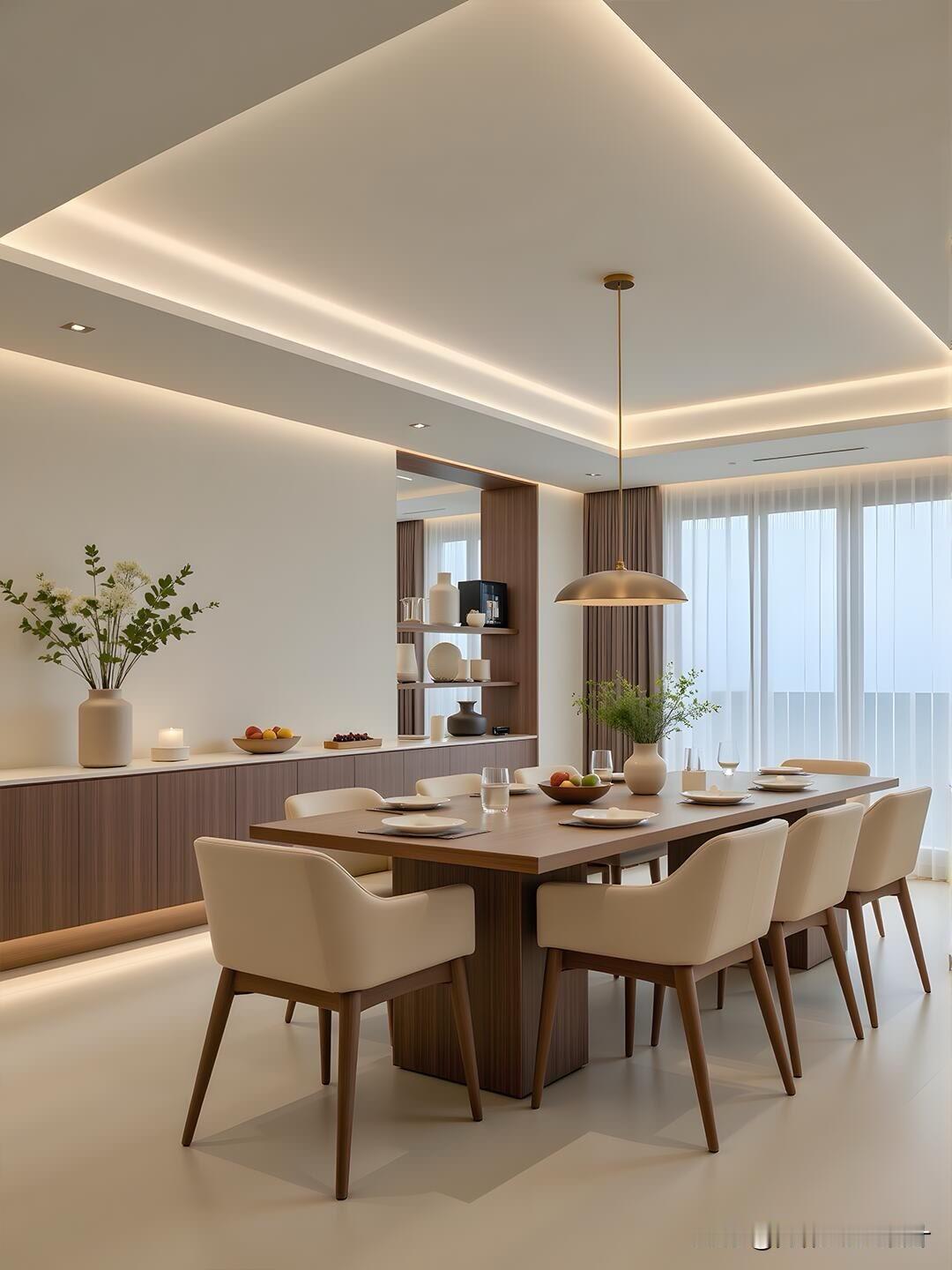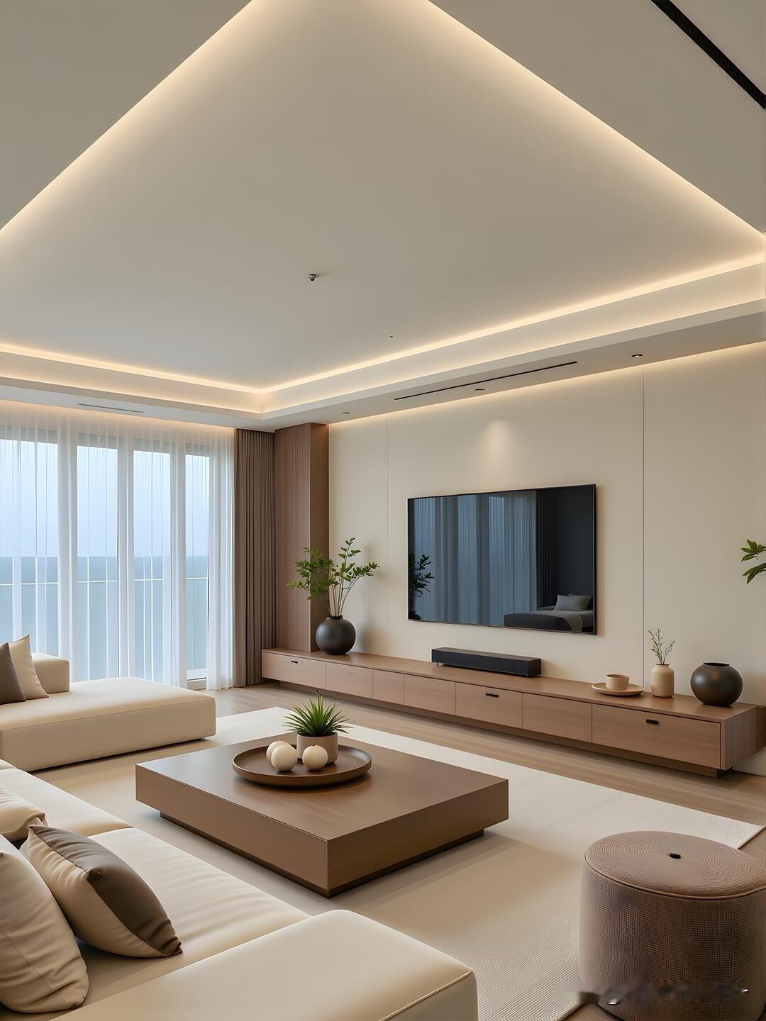 1. 局部造型,不全屋复杂- 极简石膏线/双眼皮吊顶:走细款窄边线条,弱化大白墙的空旷,轻奢、原木、现代都适配。
