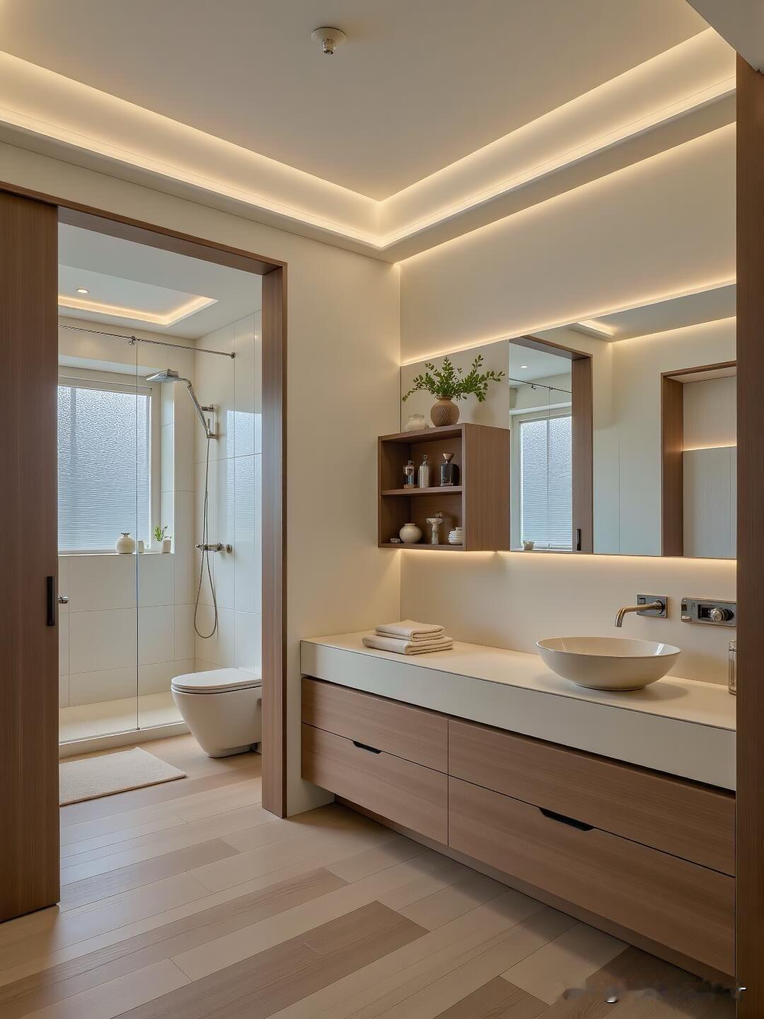 2. 暖光为主:3500K柔光,避免冷白光直射墙面,显脏又廉价。
