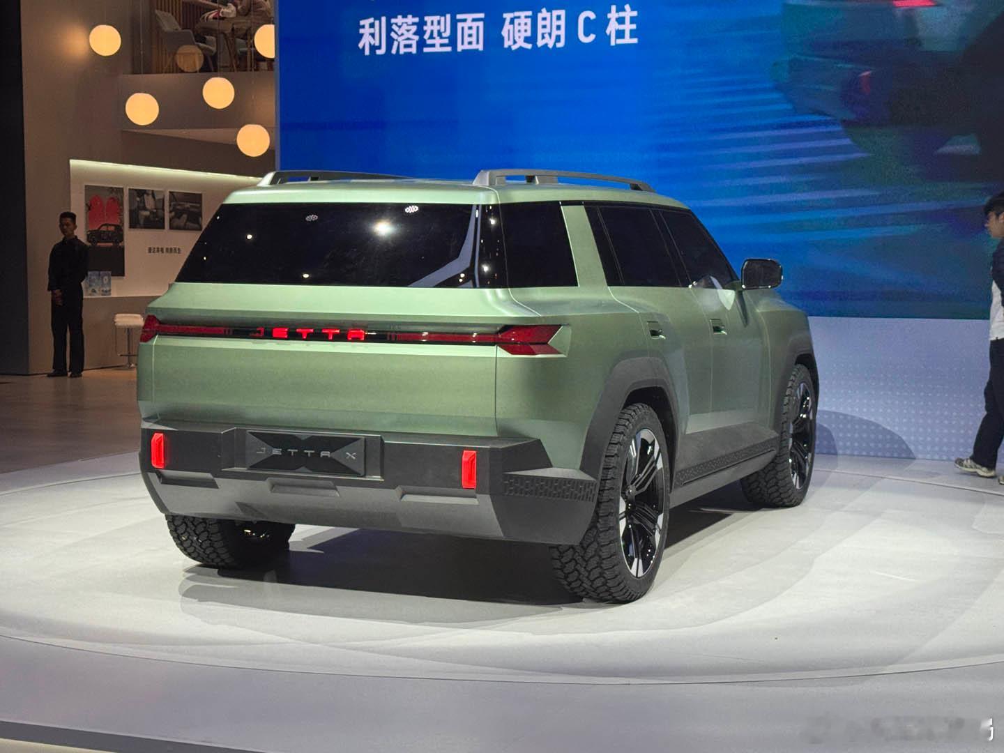 1、【外观很出彩】依然是硬派方盒子造型,但辨识率很高。方正车身、平直腰线、悬浮车顶。哑光森林绿车漆有着不俗的色彩。 外扩轮眉+黑色包围+车顶行李架都在说他的硬派表现。半隐藏门把手是符合法规的表现。