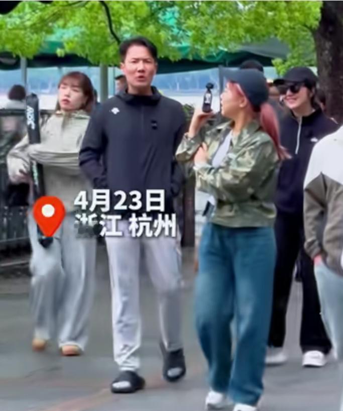 杨千嬅和她老公一起游西湖被偶遇,杨千嬅穿着黑色休闲服,戴着墨镜,头戴鸭舌帽,看起她好小巧玲珑,她丈夫也打扮很休闲,个子挺高的,俩人还真不错。