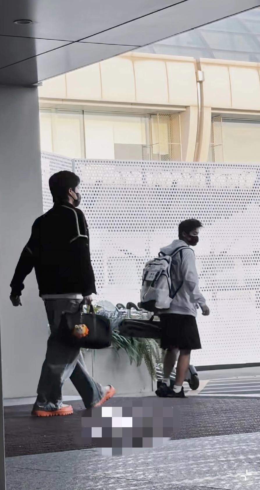 这次他回北京被拍,他提着一个黑色的包包,上面有一个橘色的挂件特别可爱,原来他是个大男孩,还有这点心思 ,挺有意思的。