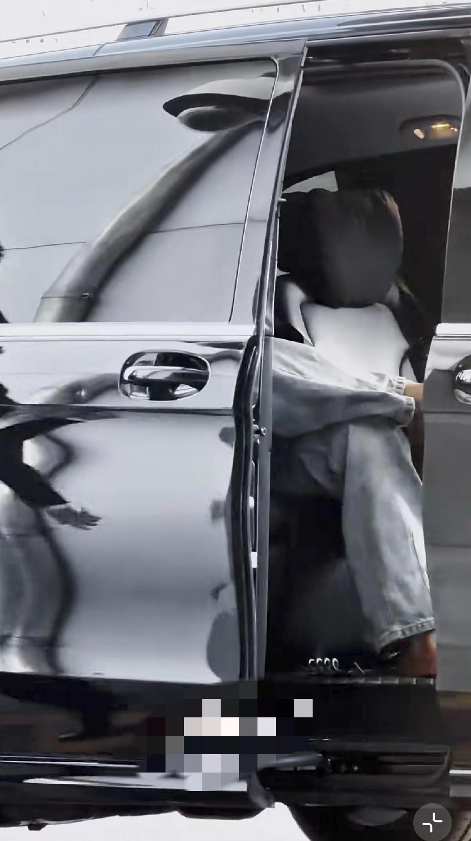 4月23日,王楚钦回京贵气逼人,翘二郎腿玩手机打电话,车门还是别人关的,包包上有
