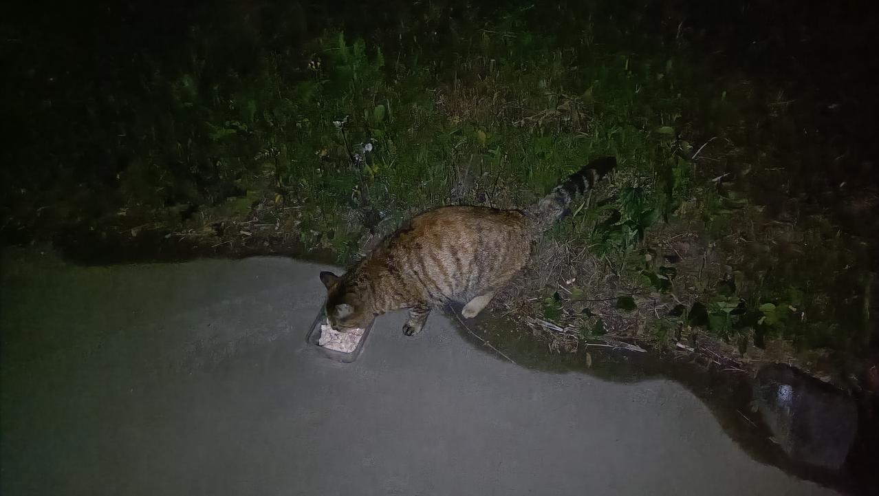 今晚去喂流浪猫,投喂点几乎看不到猫,但食物都是吃光的状态,路上遇到几只拦路要吃的流浪猫,它们知道我不会让它们失望。垃圾站的流浪猫今晚来的很少,看到有人扔的食物残渣,我明白有些流浪猫已经吃过离开了,清理干净残渣,我放好食物和水就回家了,互不打扰,是我与流浪猫相处的方式。