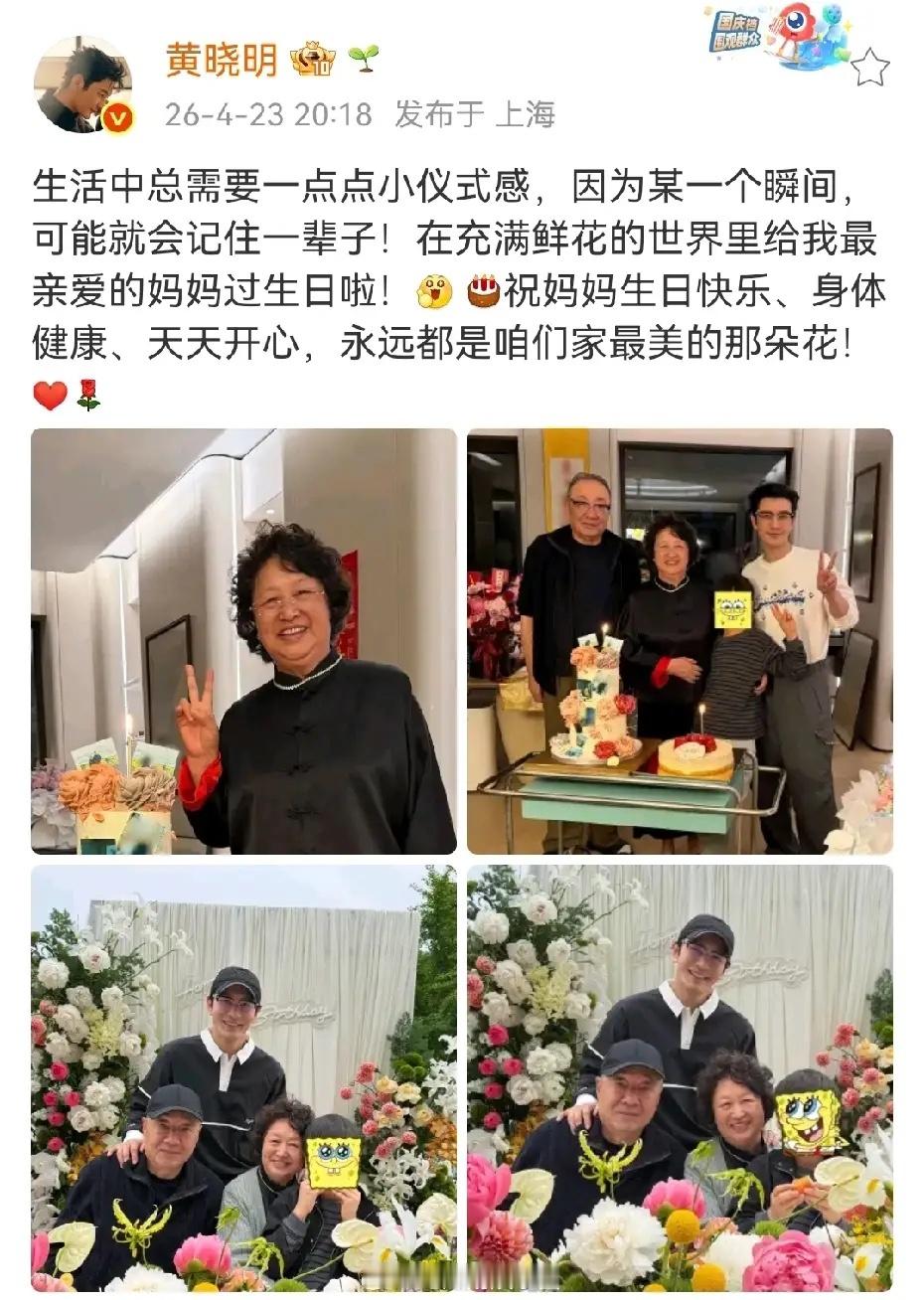 黄晓明妈妈生日,合影里只有孙子小海绵,孙女不见踪影,叶珂的如意算盘要落空了!4