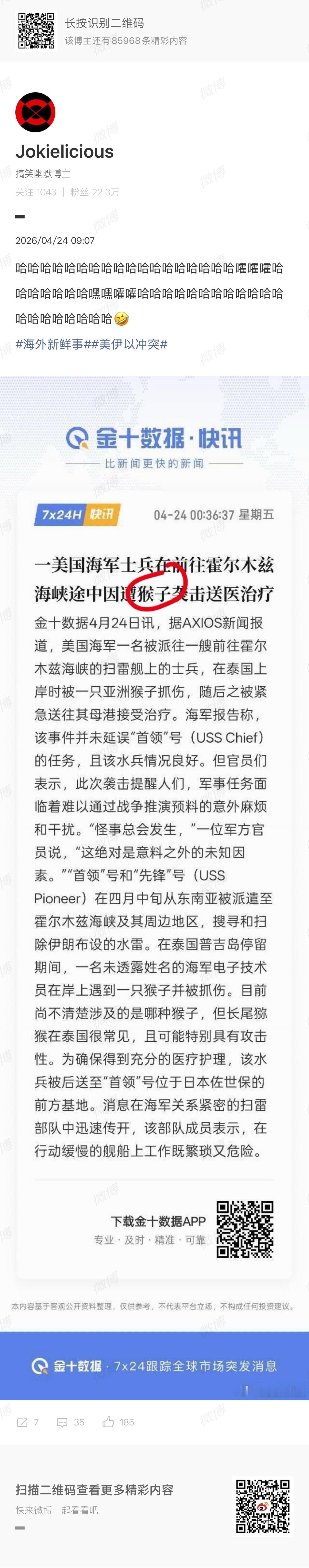 🔻来自知名玛喽博主的嘲笑。特朗普称下令击沉霍尔木兹布雷船特朗普称美完全掌控霍尔木兹海外新鲜事中东现场直击
