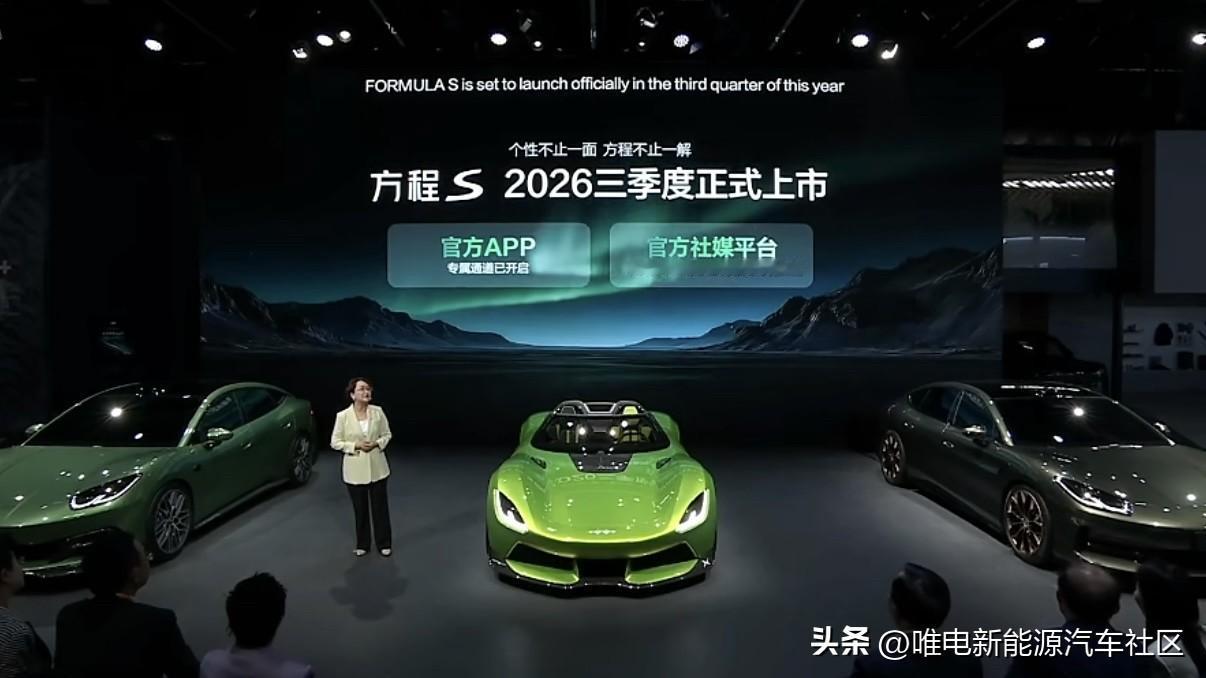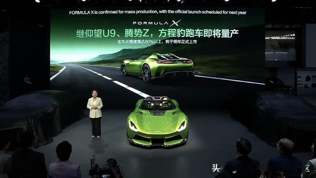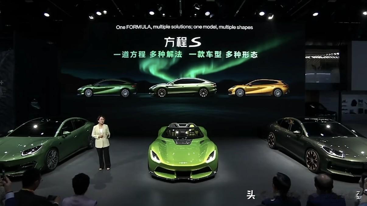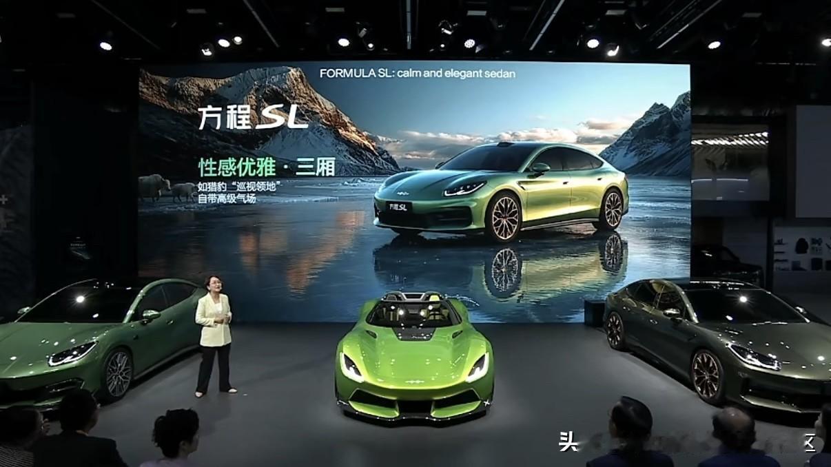 方程豹展台:Formula X概念敞篷跑车亮相[思考]将于明年量产上市,实车还原度高达80%以上[思考] 另外公布全新轿车车系三款新车——方程S、方程SL、方程S GT[思考]方程S将在今年第三季度正式上市[思考]