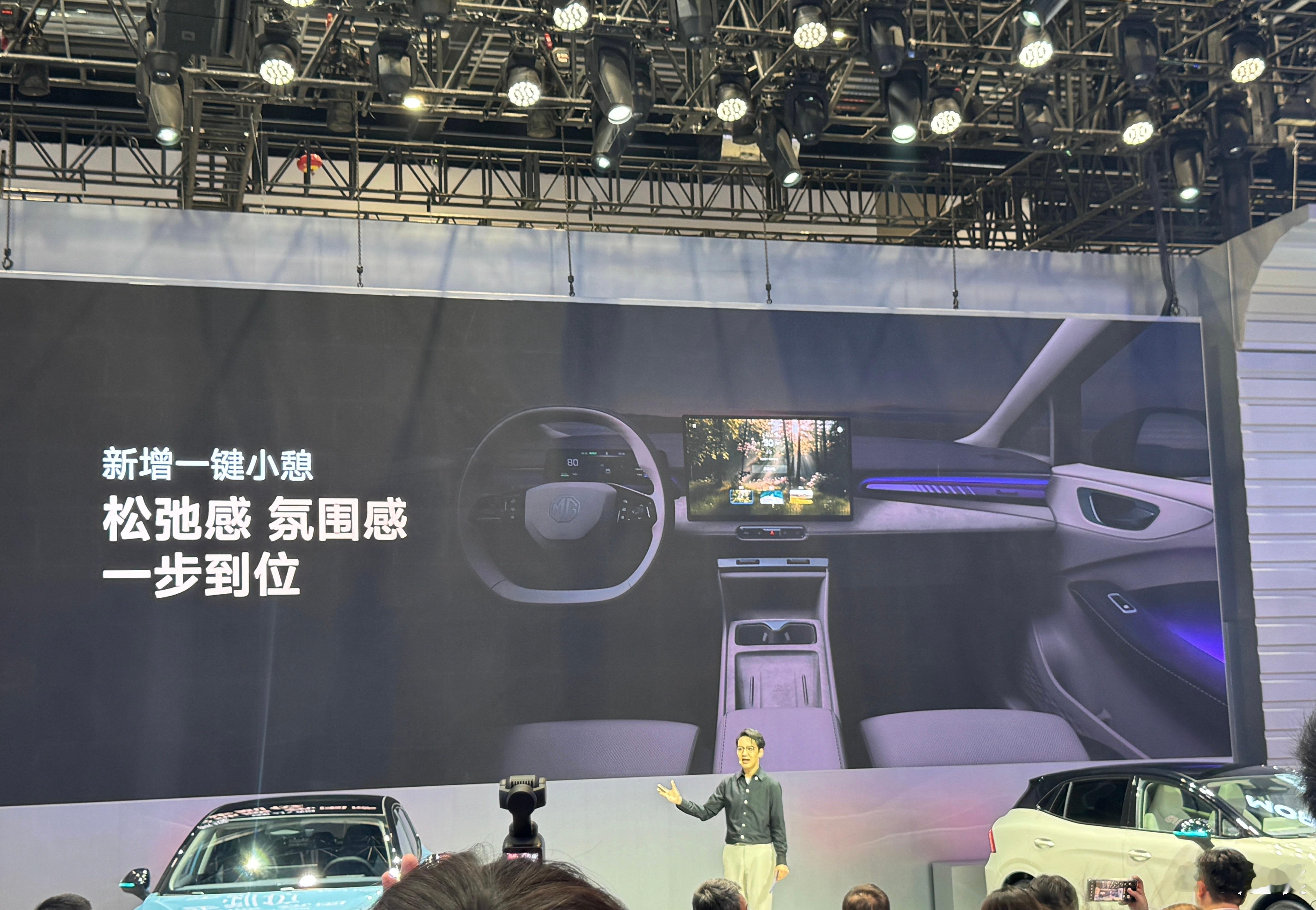 2026款MG4搭载8.88英寸主驾仪表盘与15.6英寸中控大屏,中控屏为2.5K分辨率;主驾仪表盘右侧新增卡片模式,可显示音乐、里程、胎压监测信息。前排座椅配备通风、加热、按摩及记忆调节功能,同时新增小憩模式,提升乘坐舒适体验。智能互联方面,新增无线CarPlay功能,同时上线车外隔空喊话功能,优化手车互联与日常使用便捷性。