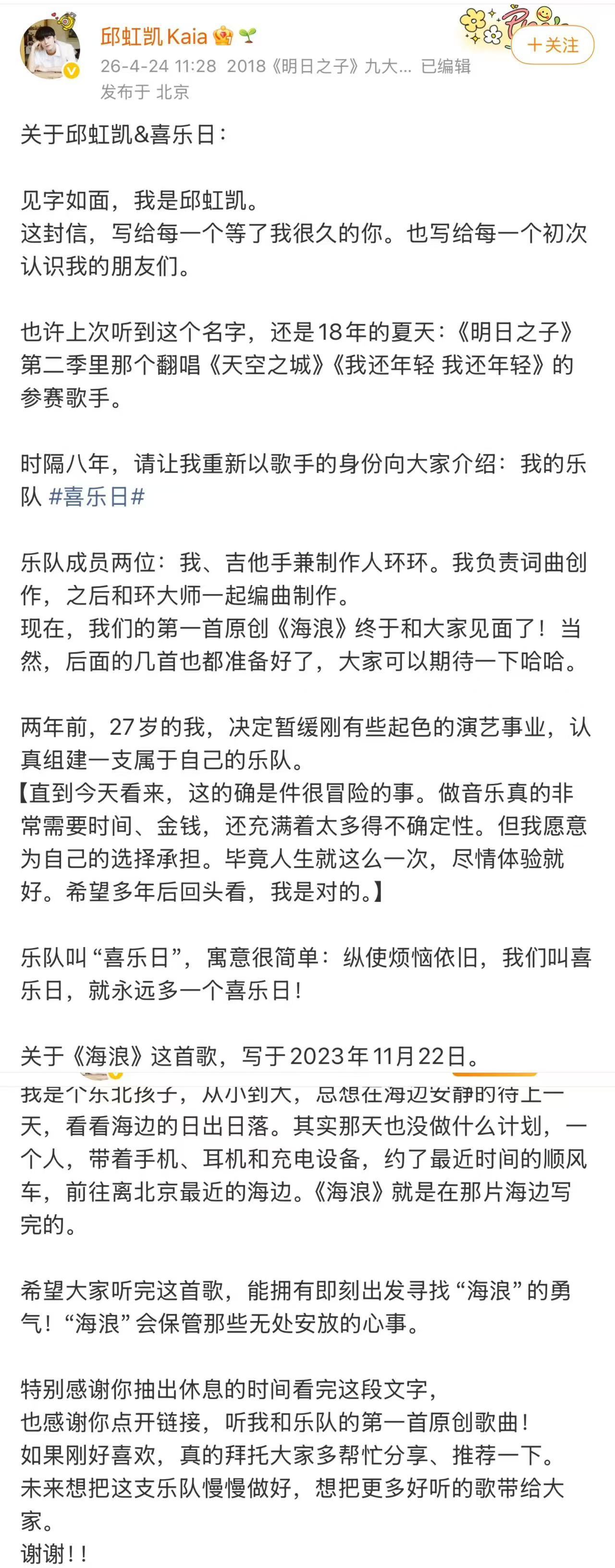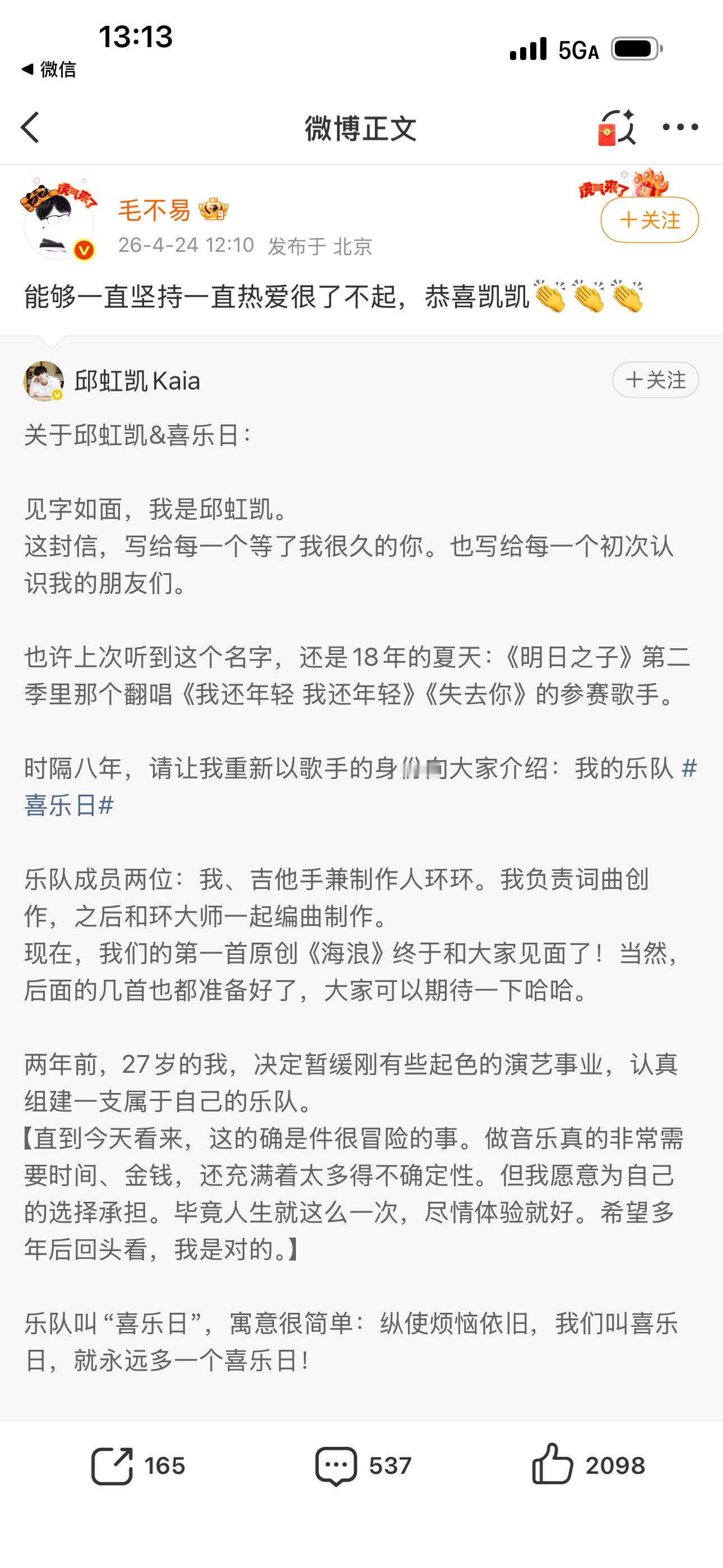 毛不易黄明昊王玉雯给邱虹凯新歌打call毛不易黄明昊打call邱虹凯新歌梦幻应援!毛不易黄明昊王玉雯助阵邱虹凯新歌,用热爱点亮音乐舞台