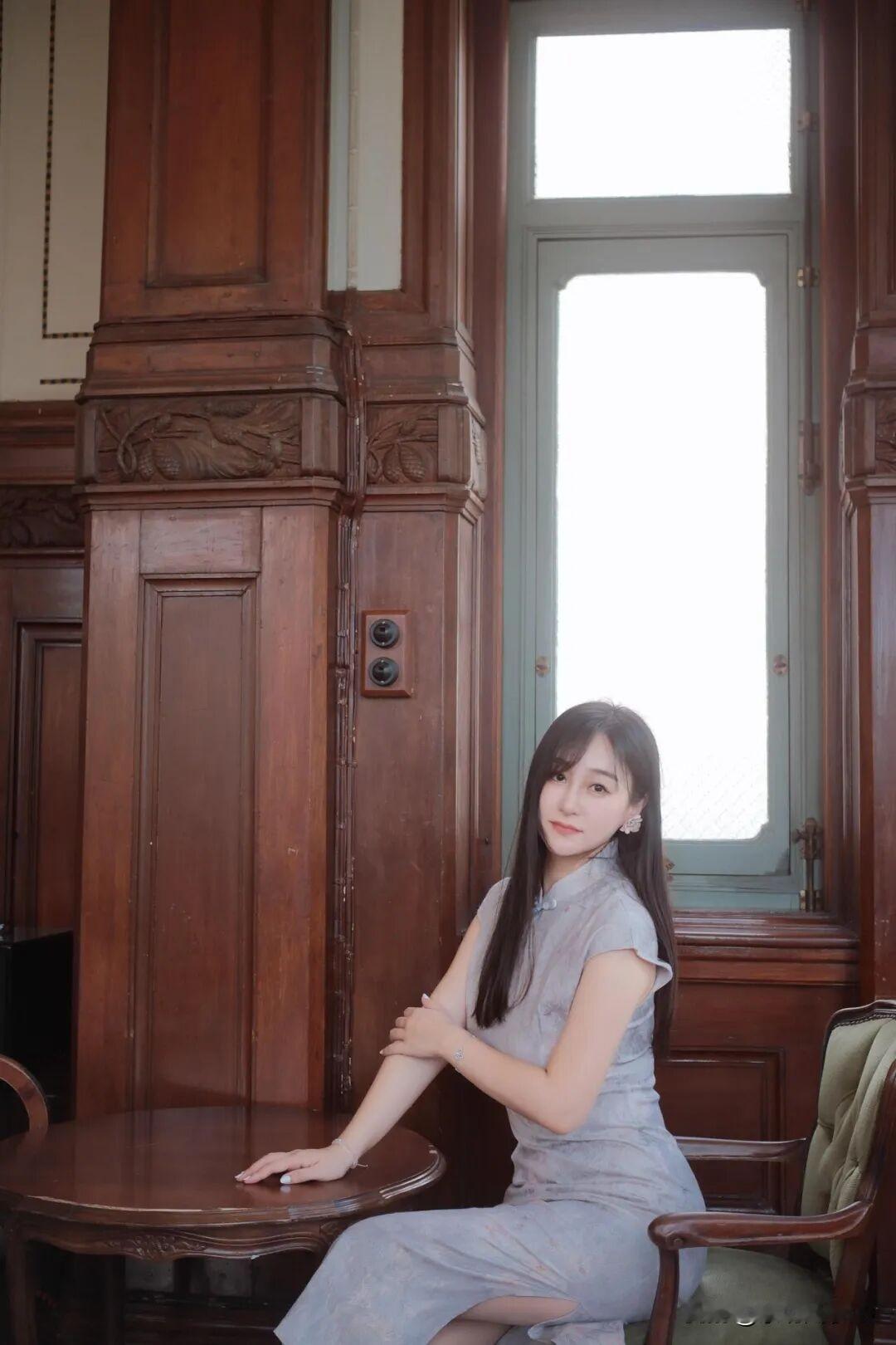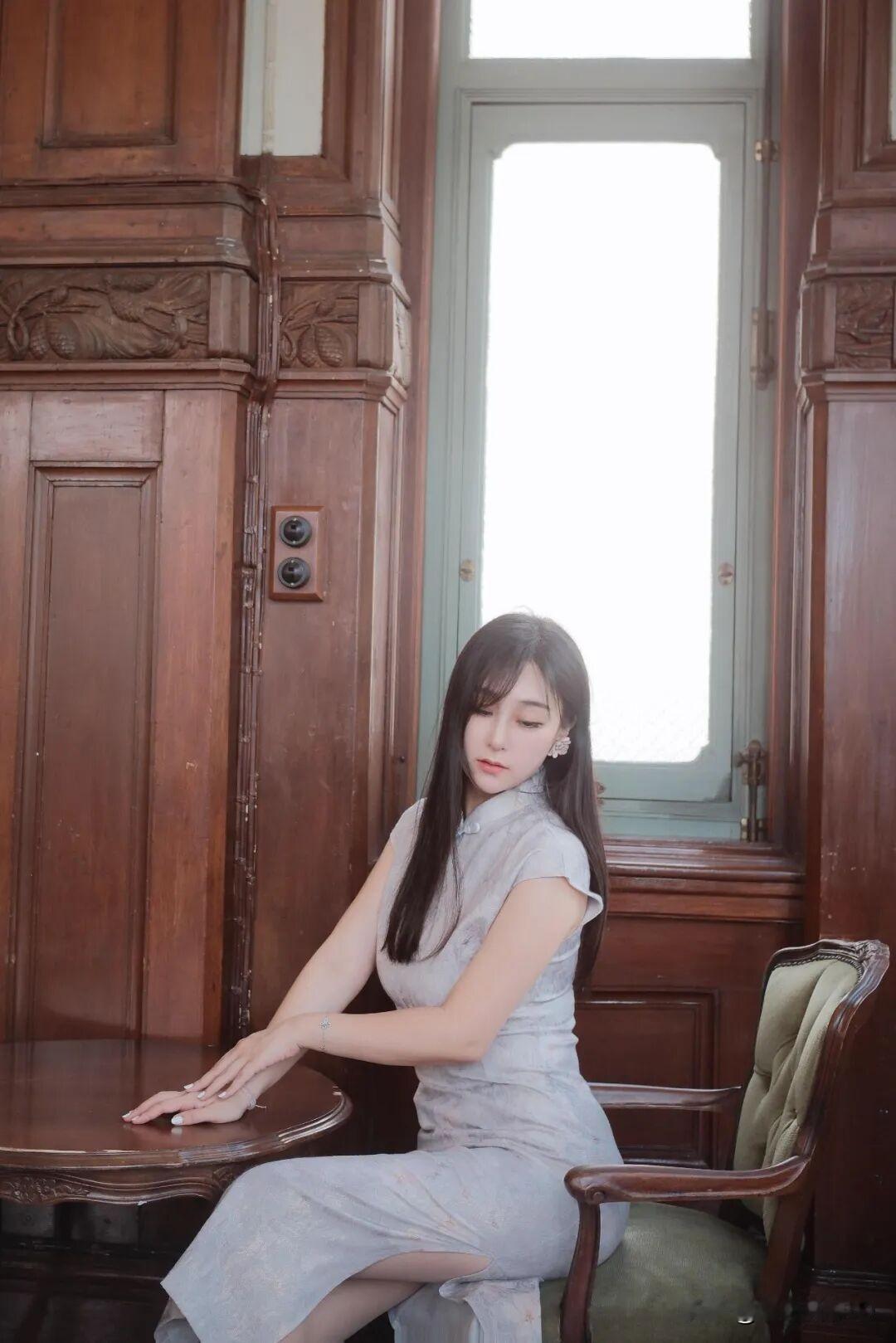 复古风穿搭,优雅坐于复古沙发上,散发迷人魅力。
