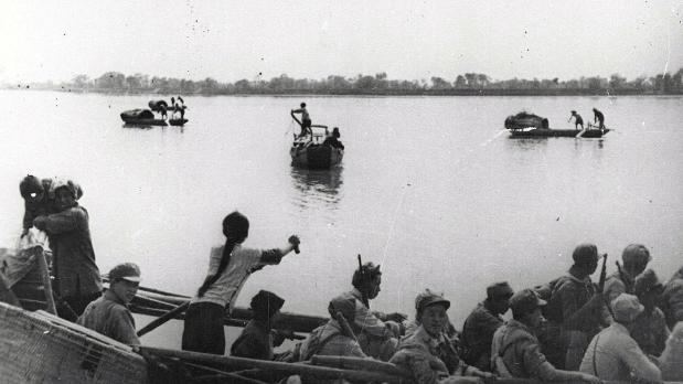 4月22日正式渡江,江面上全是船,炮声炸得江水翻花,子弹在耳边飞,颜红英家的小木船坐了24名解放军战士,父亲在船尾掌舵,她和妹妹轮流划桨,船到江心,一颗炮弹在不远处炸开,弹片飞过来,削去她手臂上一块肉,脸颊也被擦破,血一下子流出来,沾在衣服和船桨上。
