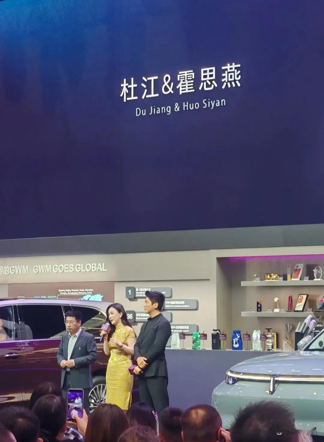 杜江夫妇现身北京车展,霍思燕这一身黄色旗袍的穿搭,看着好有韵味!