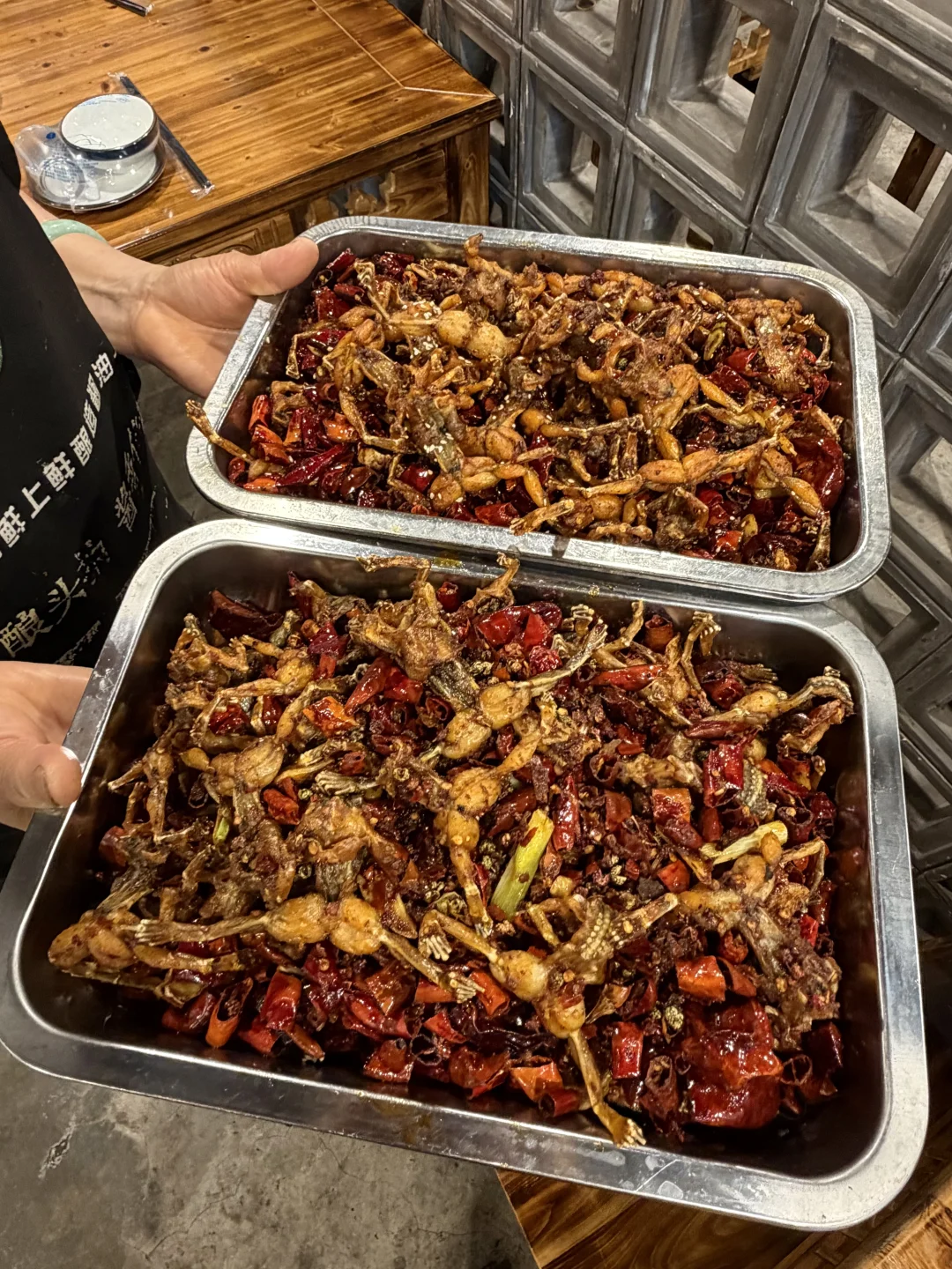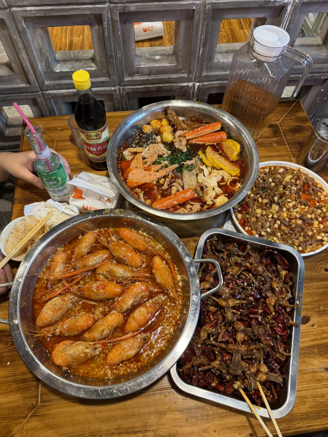在重庆吃过不下10次的小店!不太好找!主要是吃江湖菜的!口味很重庆!虾蟹按斤称,然后可以选择不同的做法,蒜蓉的罗氏虾很ok!招牌的呱呱每次都会点,姜丝和干煸都好好吃!!!新出的香辣三拼、极品毛血旺……全是下饭下酒菜,人多更好点菜,很适合跟朋友反复去吃的宝藏小店!!!