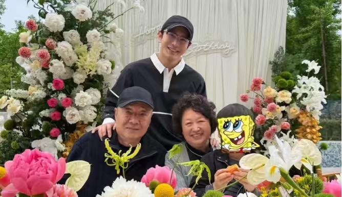 4月23号是黄晓明妈妈生日,黄晓明晒出了他和爸妈以及儿子小海绵的合照。