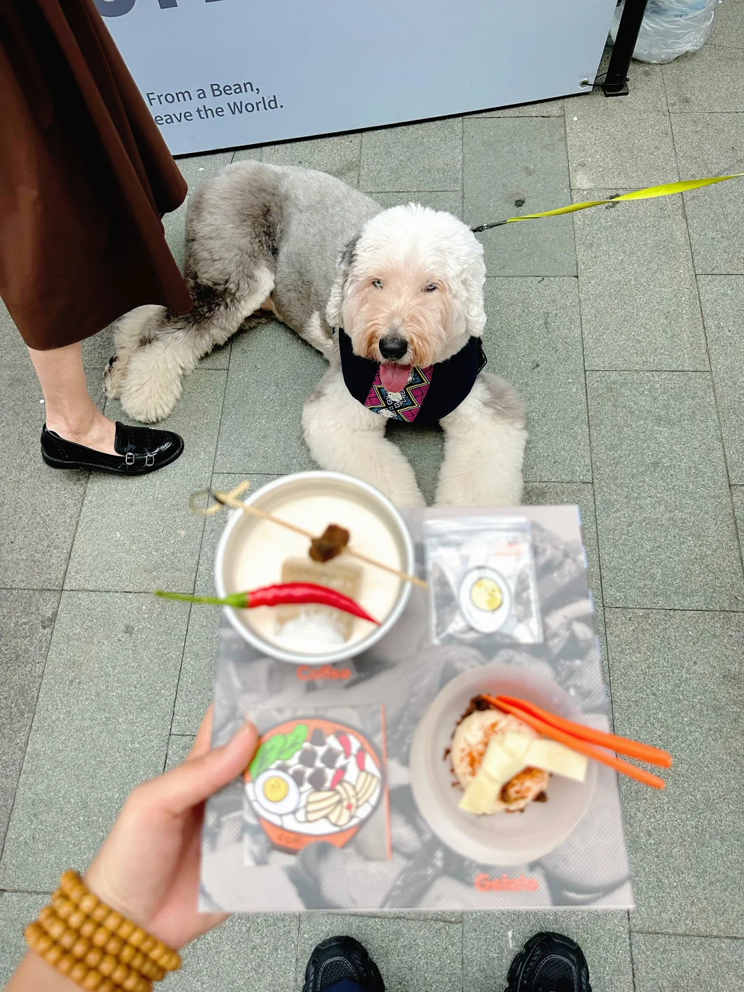 路人也都超温柔,好几家小店还会主动给狗狗倒水,担心小狗中暑~真的很友好