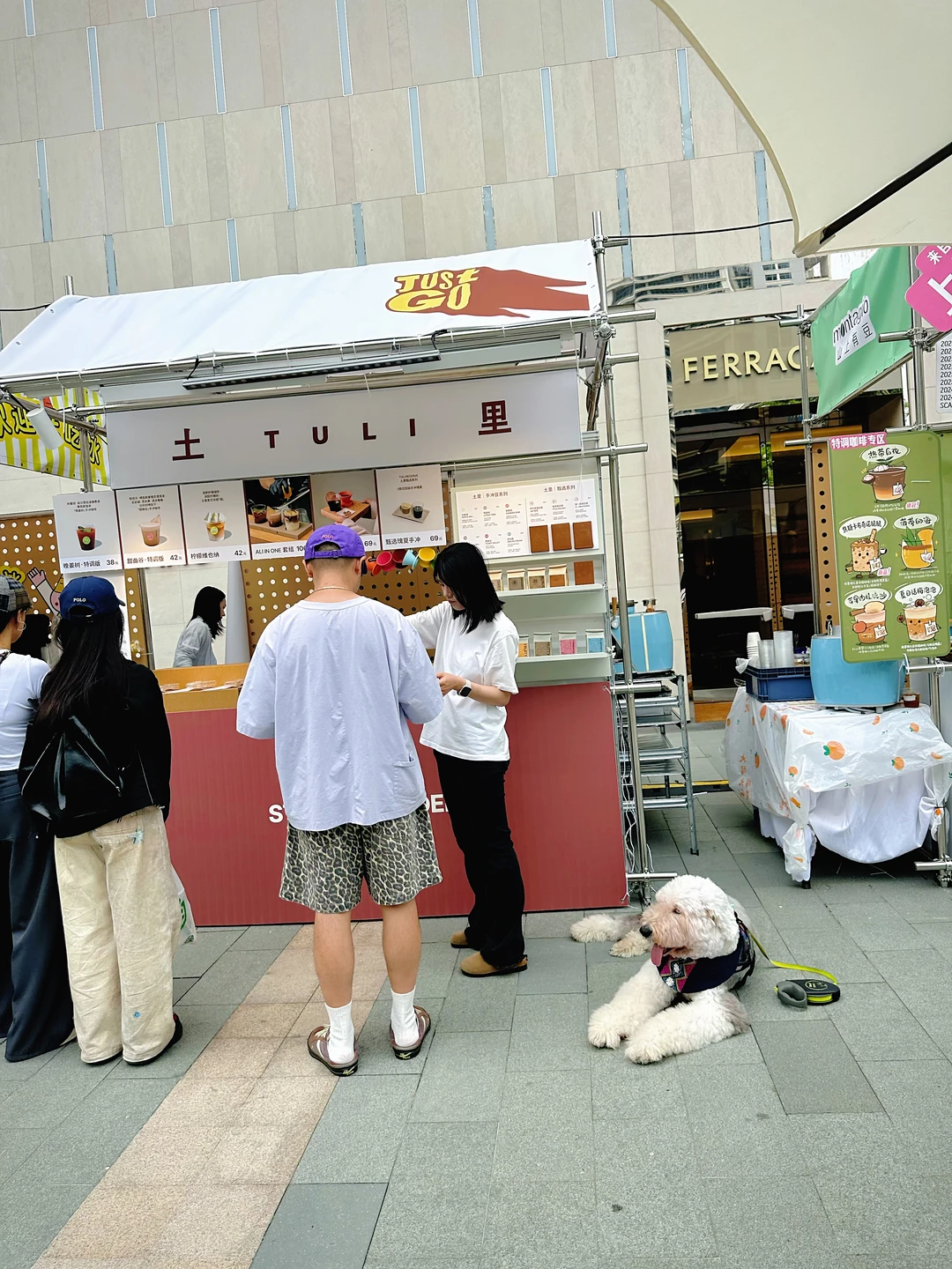 今年简直天选之子,刚下完雨,调皮晴朗透着丝丝凉快,整整逛了两三个小时,小狗疯狂营业贴贴,老母亲一口气干了四五杯咖啡!