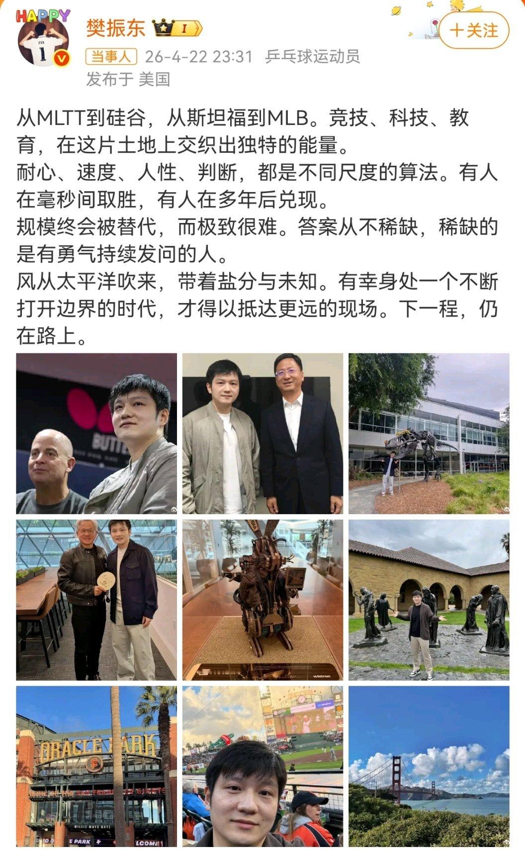 樊振东说仍在路上东哥加油,期待更加优秀的你,俺们永远支持你