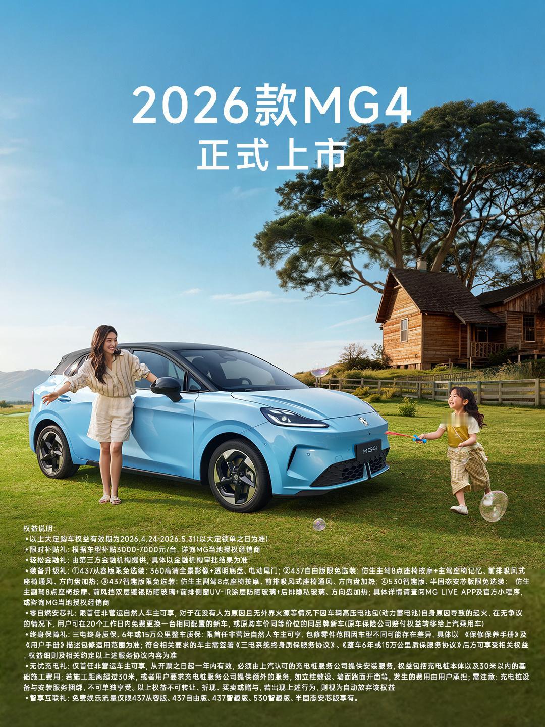 上汽MG 2026款MG4正式上市, 限时补贴价6.58万元起!