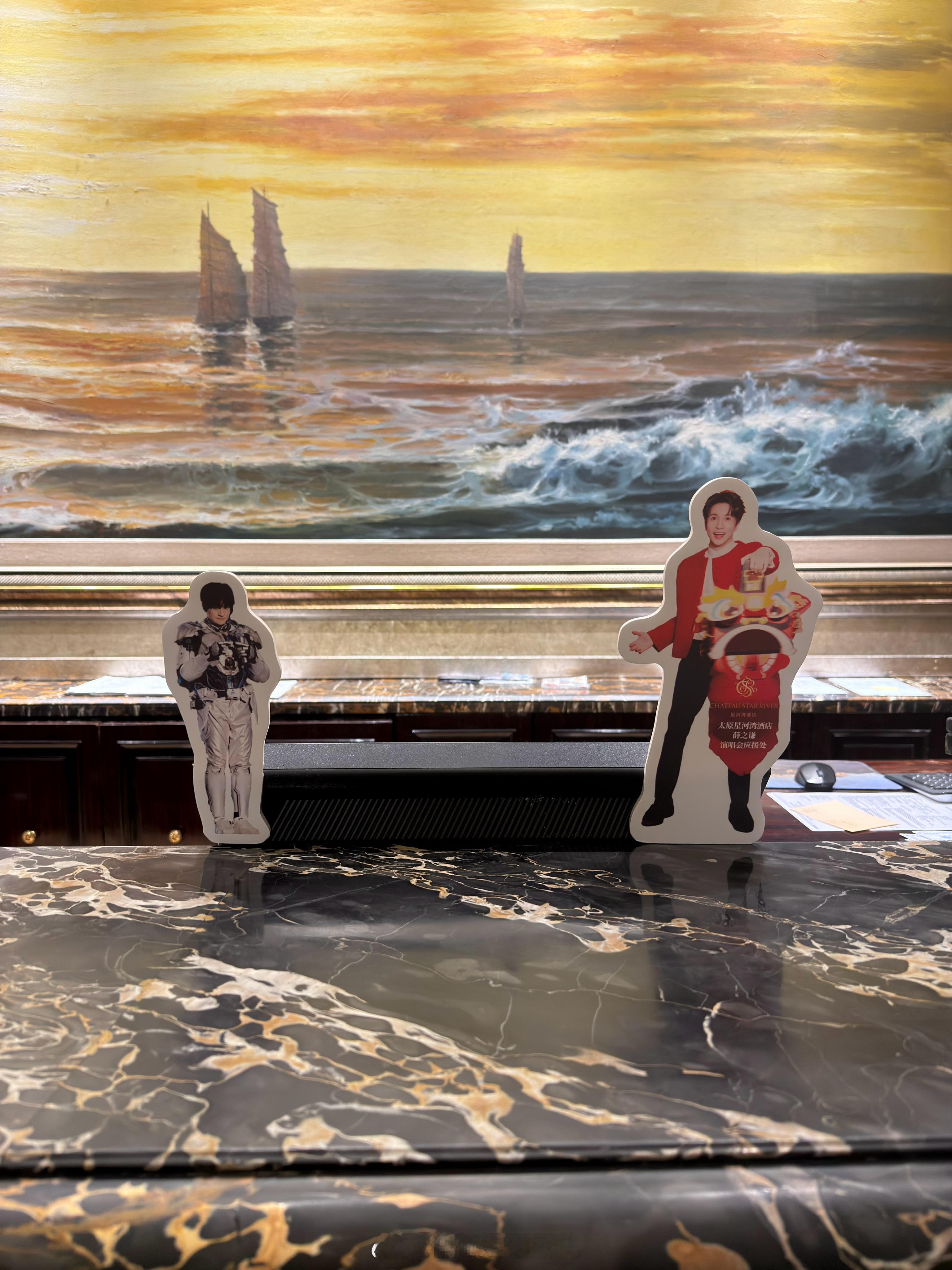 薛之谦万兽之王巡回演唱会 有心了,办理入住的前台都有谦友专属通道,还有薛宝的小立牌站在电脑旁边,很搞笑的样子! 太原·星河湾酒店(太原店)