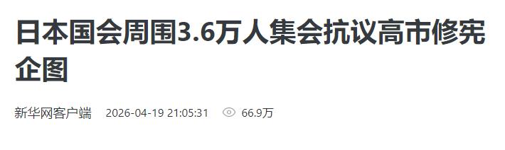 2026年4月19日,日本国会前的广场上挤满了人,组织者说当天来了3.6万人。