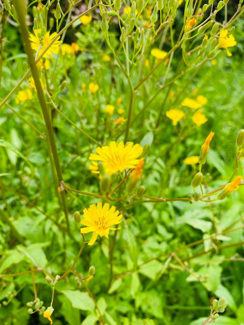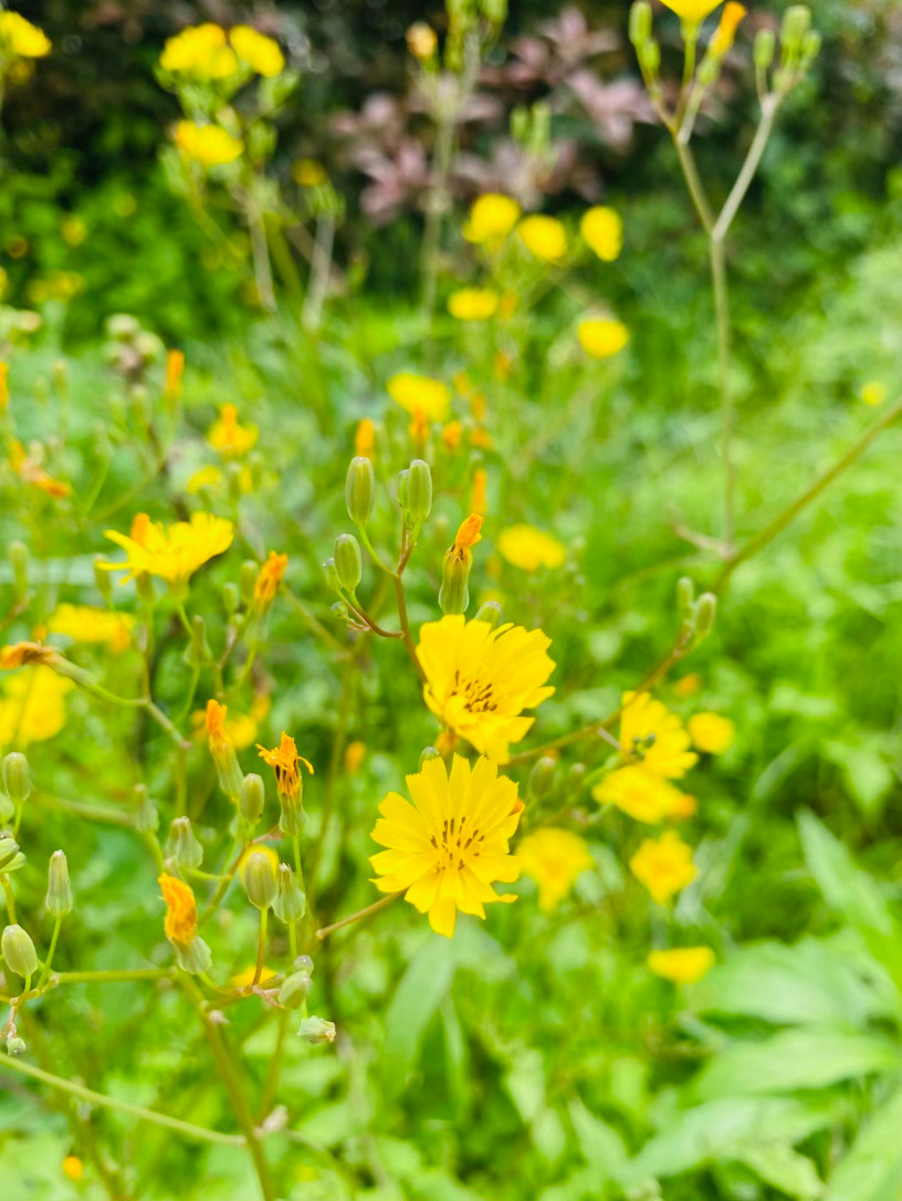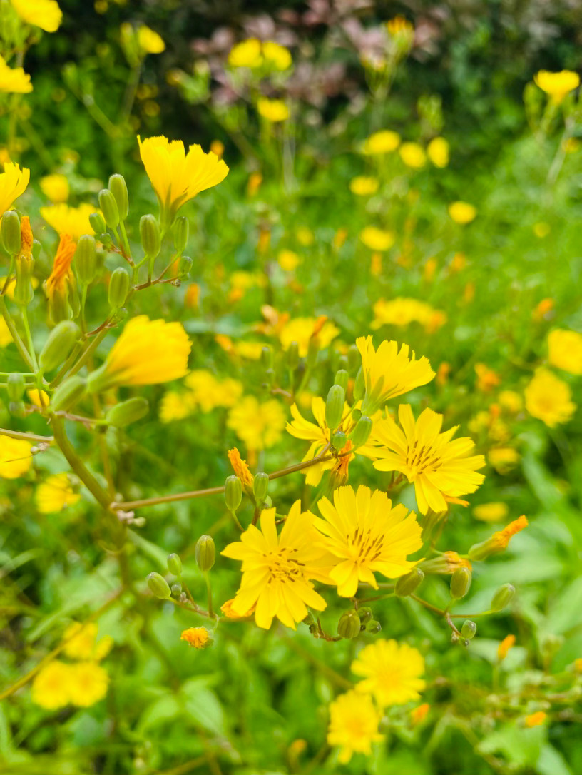 不似那孤高独绽的单花,你偏爱热闹与繁盛。纤长的花茎执着地向苍穹伸展,在顶端悠然分出枝桠,捧出一簇簇明艳的金黄。那未开的花苞似翠绿的小棒,藏着春天最细腻的心事。一阵风过,你虽没有蒲公英那般硕大如球的冠毛,却将轻盈的种子结成精致的小簇,乘风去赴另一场生命的邀约。