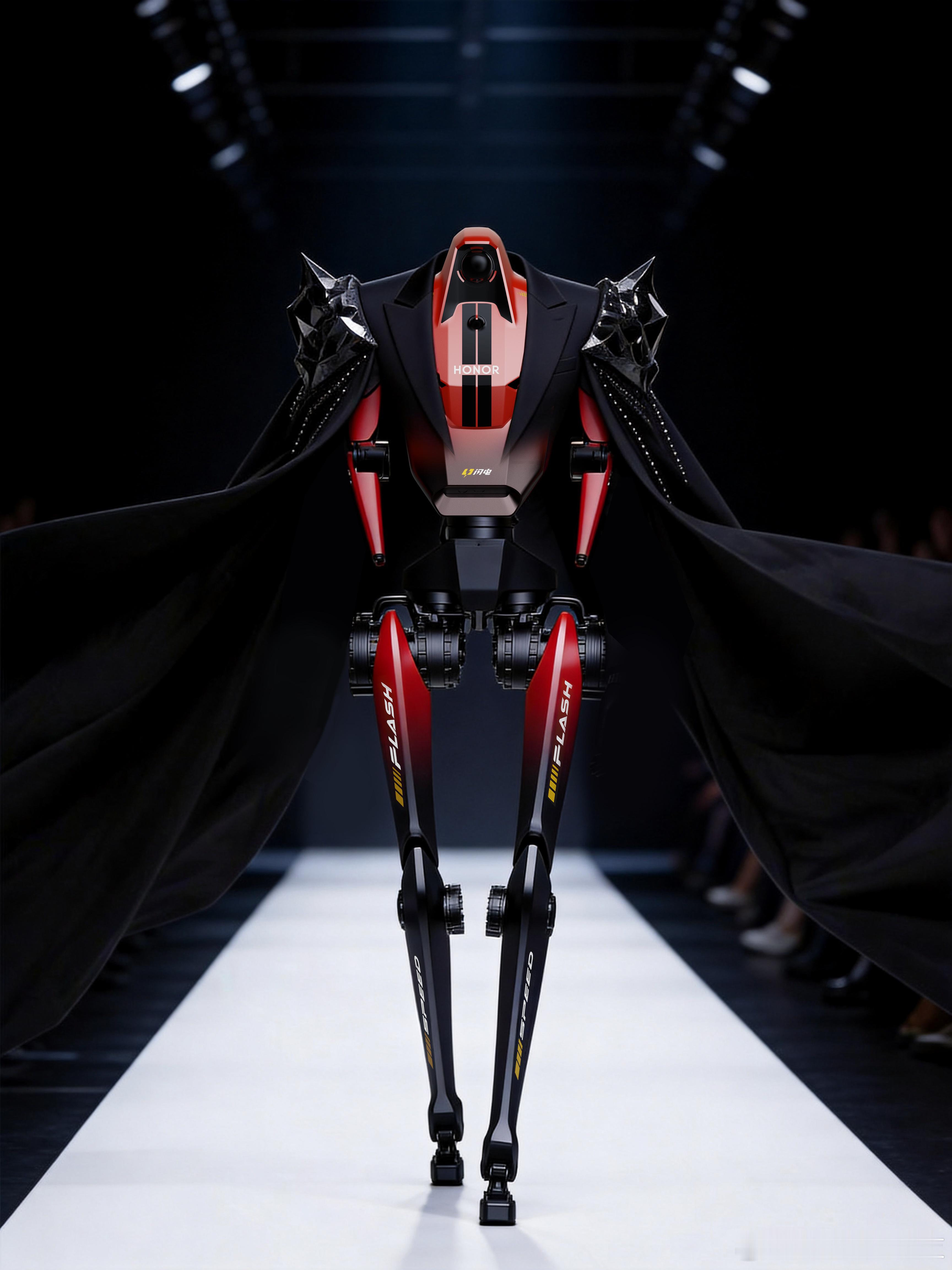 胡兵给荣耀机器人发走秀offer胡兵喊话荣耀出机器人周边荣耀机器人北京亦庄机器人马拉松夺冠后,摇身一变成T台新人,在跑步上跑姿帅气,在T型台上同样挺胸、抬头、收腹、提臀,样样做的有板有眼。