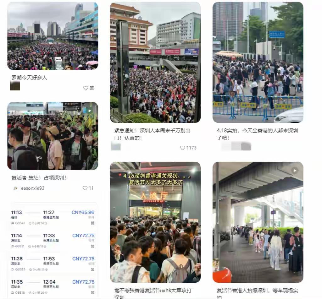 社交平台上,港人挤爆内地的画面铺天盖地。
